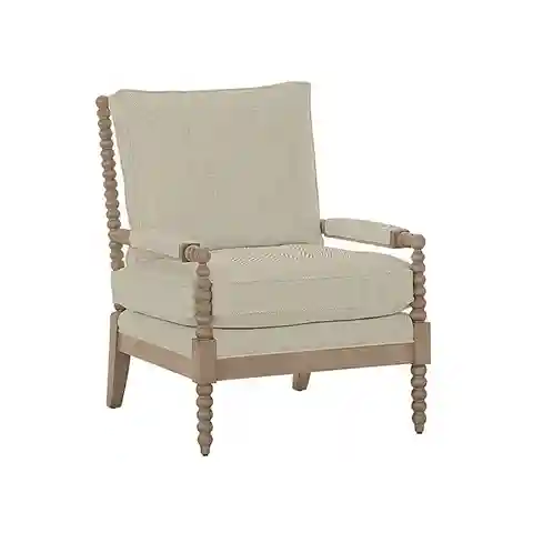 "American spool furniture became hugely popular in the mid 19th century and remains a classic decorator favorite. Our Shiloh Spool Chair captures the vintage look with deep seat comfort and richly carved texture. The hardwood frame is artisan crafted in North Carolina with warm Latte finish and feat...more