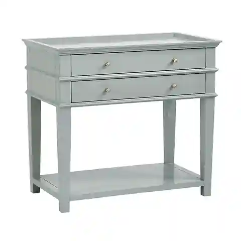 "With its two drawers and open shelf, our Grace Nightstand offers an elegant blending of hidden and open storage. Generously sized top is recessed to contain spills and keep essentials where they belong. Grace Open 2-Drawer Nightstand features:
