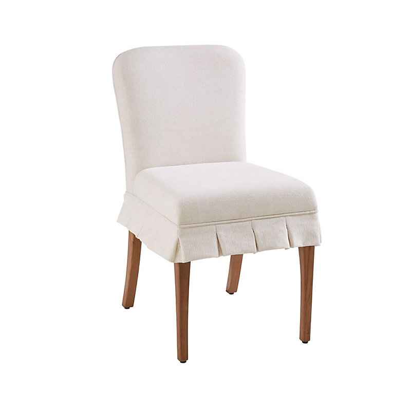 "It's rare to find a dining chair that's as comfortable as it is beautiful. Our Betsy Dining Chair comes dressed for the party in a pretty box-pleated skirt and upholstered in your choice of two easy-to-love designer fabrics. The shapely frame is crafted of solid oak in a Walnut finish with gently c...more