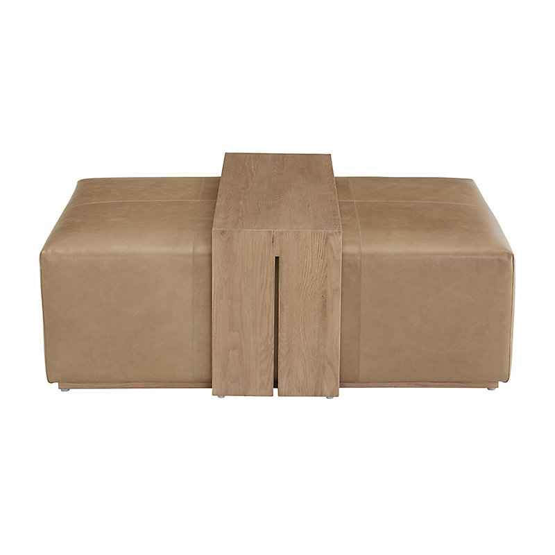 "Luxe comfort or fabulous flexibility? With our multi-talented Malone Leather Cocktail Ottoman, you can have it all. The beautiful, oversized Ottoman is hand upholstered in soft, full-grain taupe leather with tailored top-stitch details for a finely finished look. The ottoman rests on a recessed pli...more