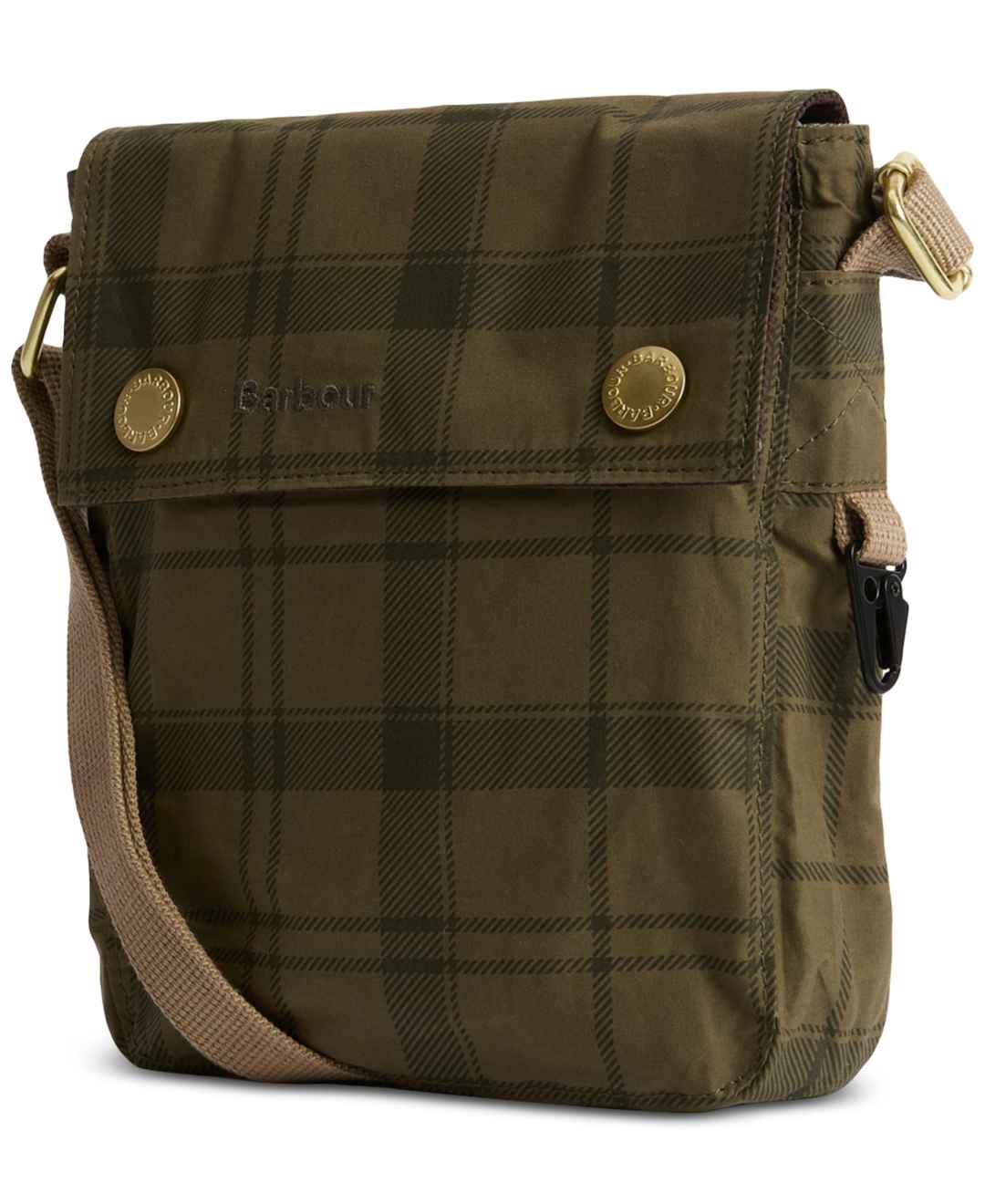 Barbour Men's Transport Stud-Fastening Flap Crossbody Bag - Dusky Green Tartan