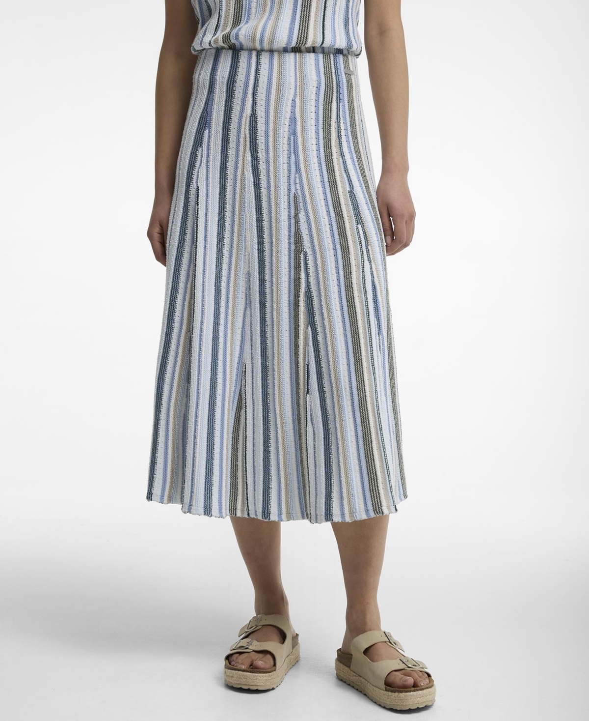 Elevate your everyday wardrobe with this Barbour Josie knitted midi skirt, where a textured multi-stripe pattern meets a flattering A-line silhouette for relaxed, all-day elegance. Concealed elastic waistband and subtle metal Id bar ensure comfort and a signature touch.