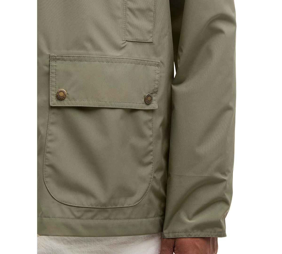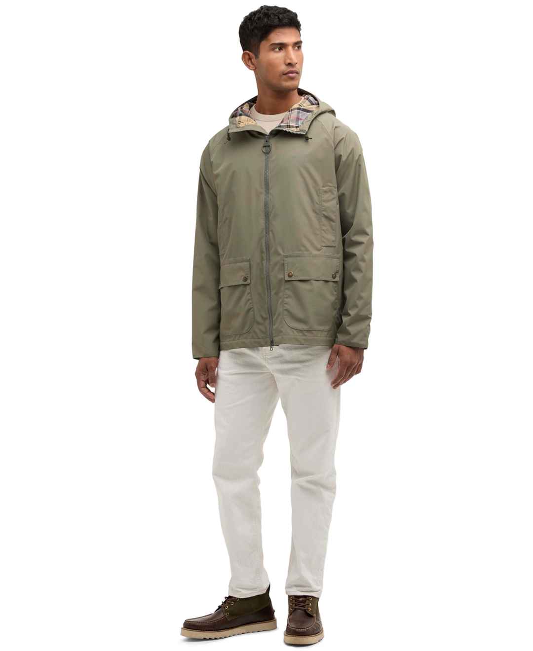 Stay stylish in any weather with this Barbour Hooded Domus jacket featuring a fixed hood and zip-front fastening. Hand-warmer pockets and lower bellows add functional storage to its waterproof design.