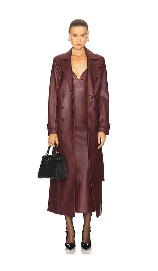 Bardot Faux Leather Longline Coat in Burgundy. - size L (also in M, S, XL, XS)