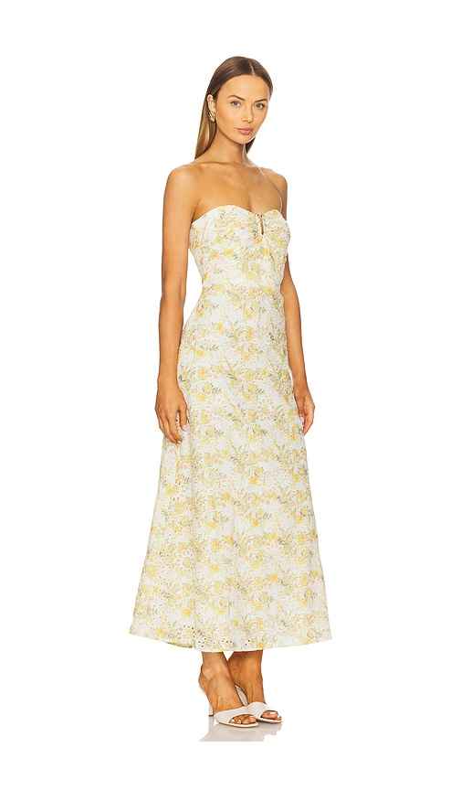 Bardot Lora Broderie Maxi Dress in Yellow. - size 12 (also in 10, 2, 4, 6, 8) Bardot Lora Broderie Maxi Dress in Yellow. - size 12 (also in 10, 2, 4, 6, 8) Self & Lining: 100% cotton Contrast Fabric: 100% polyester. Made in China. Hand wash. Fully lined. Hidden back zip closure. Boned bodice and str...more
