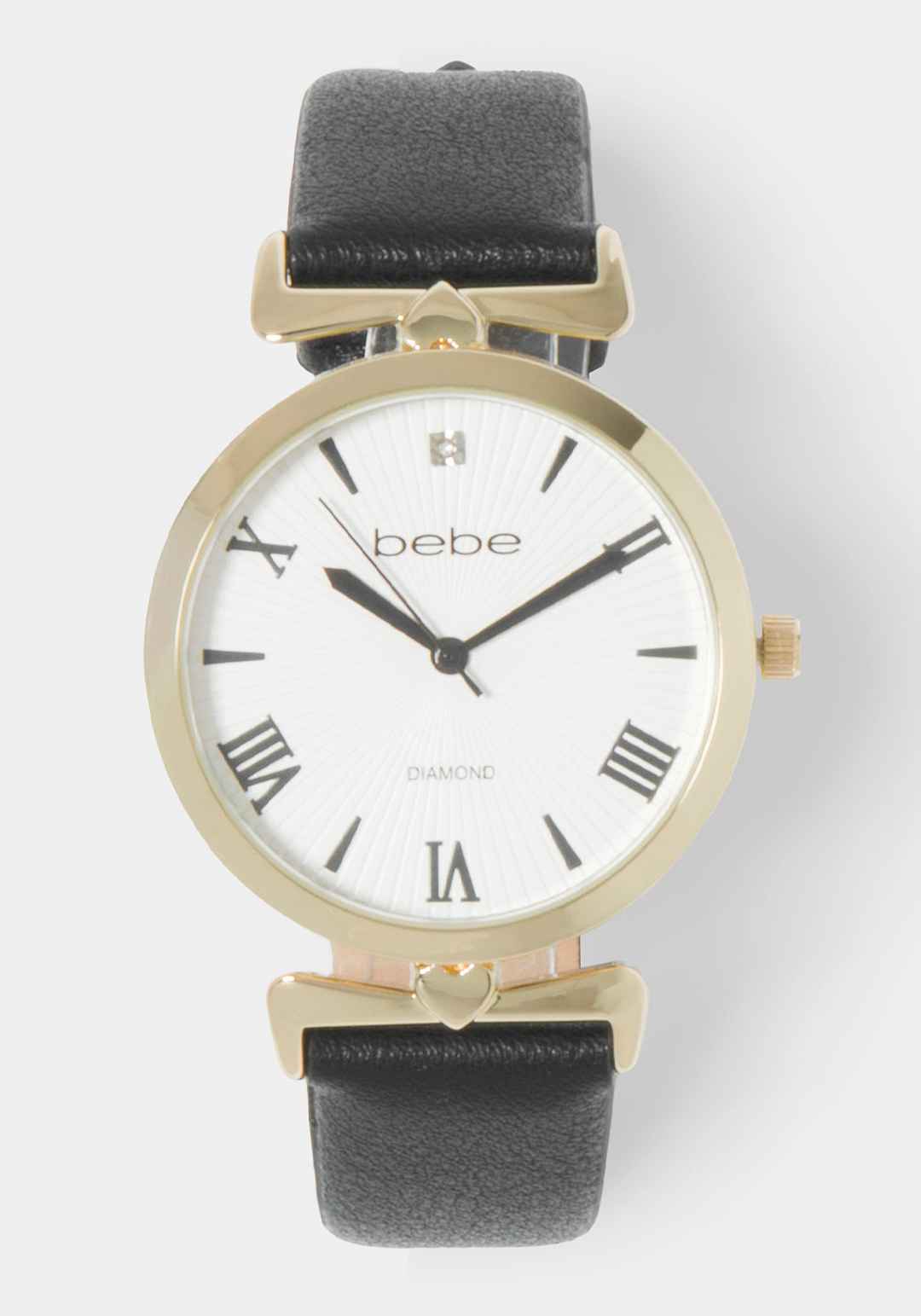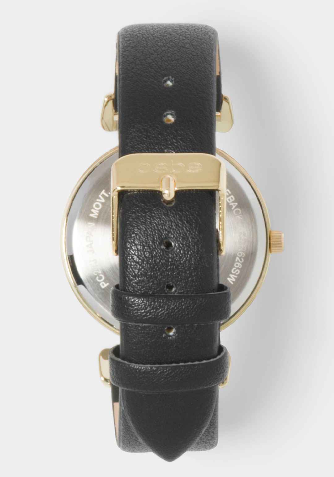 With its luxurious black strap and diamond-studded dial, this watch is the epitome of understated elegance. It's a testament to style and precision, perfect for every occasion. PU Strap; Alloy Case; Stainless Steel Case back and Buckle; Genuine Diamond Spot clean. Not water resistant. Imported | Beb...more