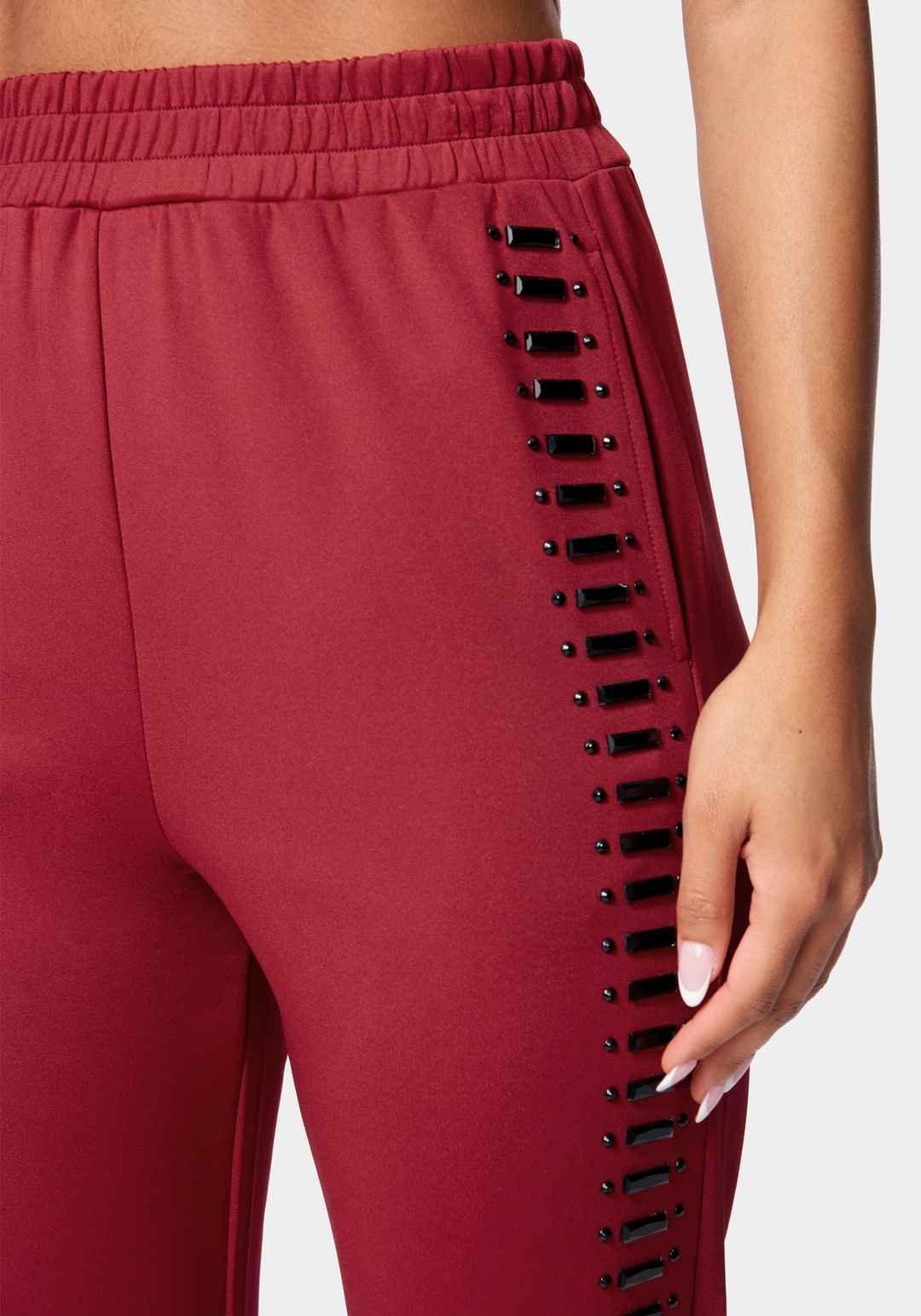 Work it out. This is a scuba knit jogger featuring gemstone embellishments, a drawstring waistband, and front slip pockets. Pairs perfectly with the Scuba Embellished Zip Up Hoodie. 57% Polyester 36% Rayon 7% Spandex Hand Wash, Hang To Dry Imported 28" Inseam | Bebe Women's Scuba Embellished Jogger ...more