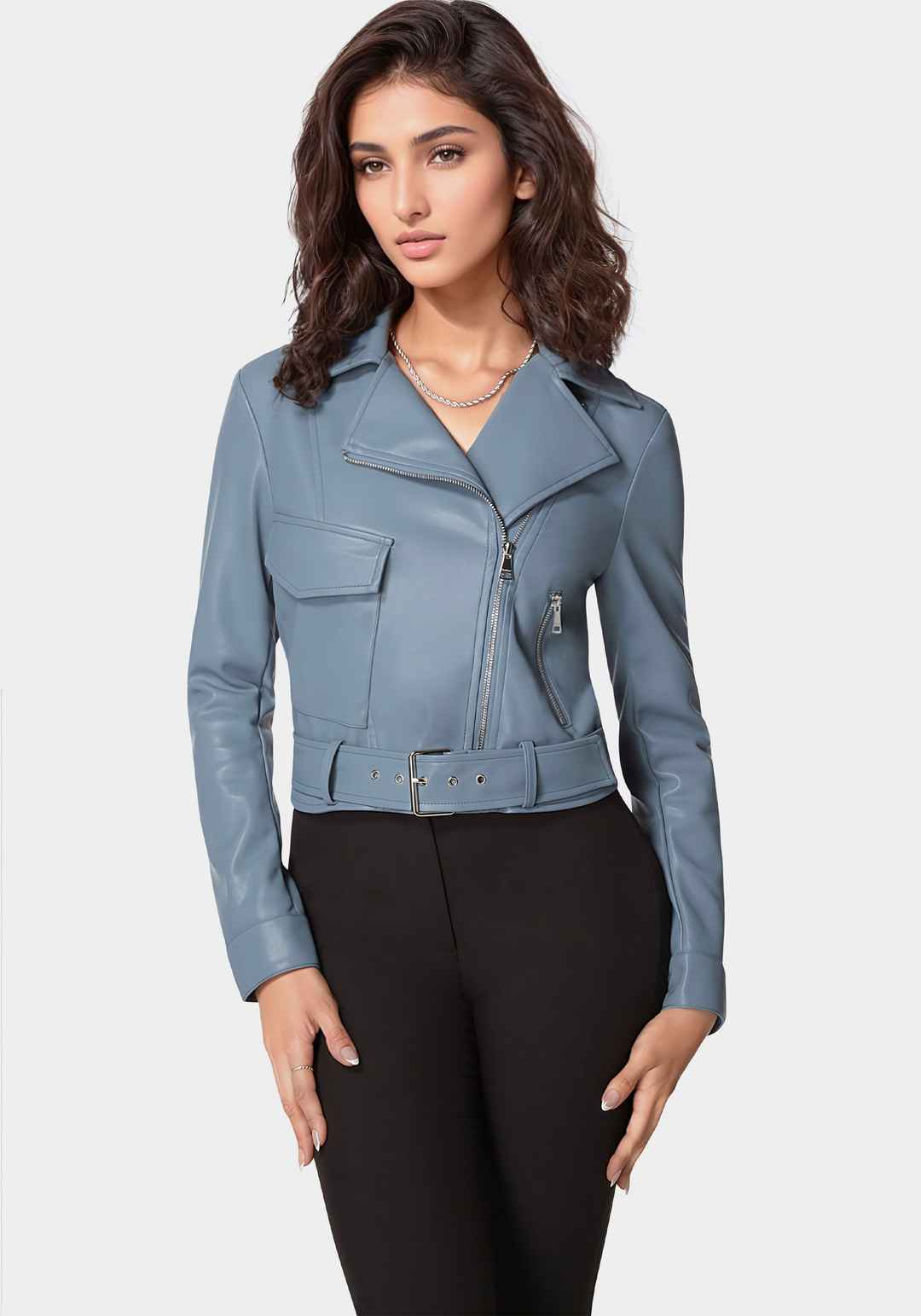 Vegan Leather Zipper Detail Moto Jacket
