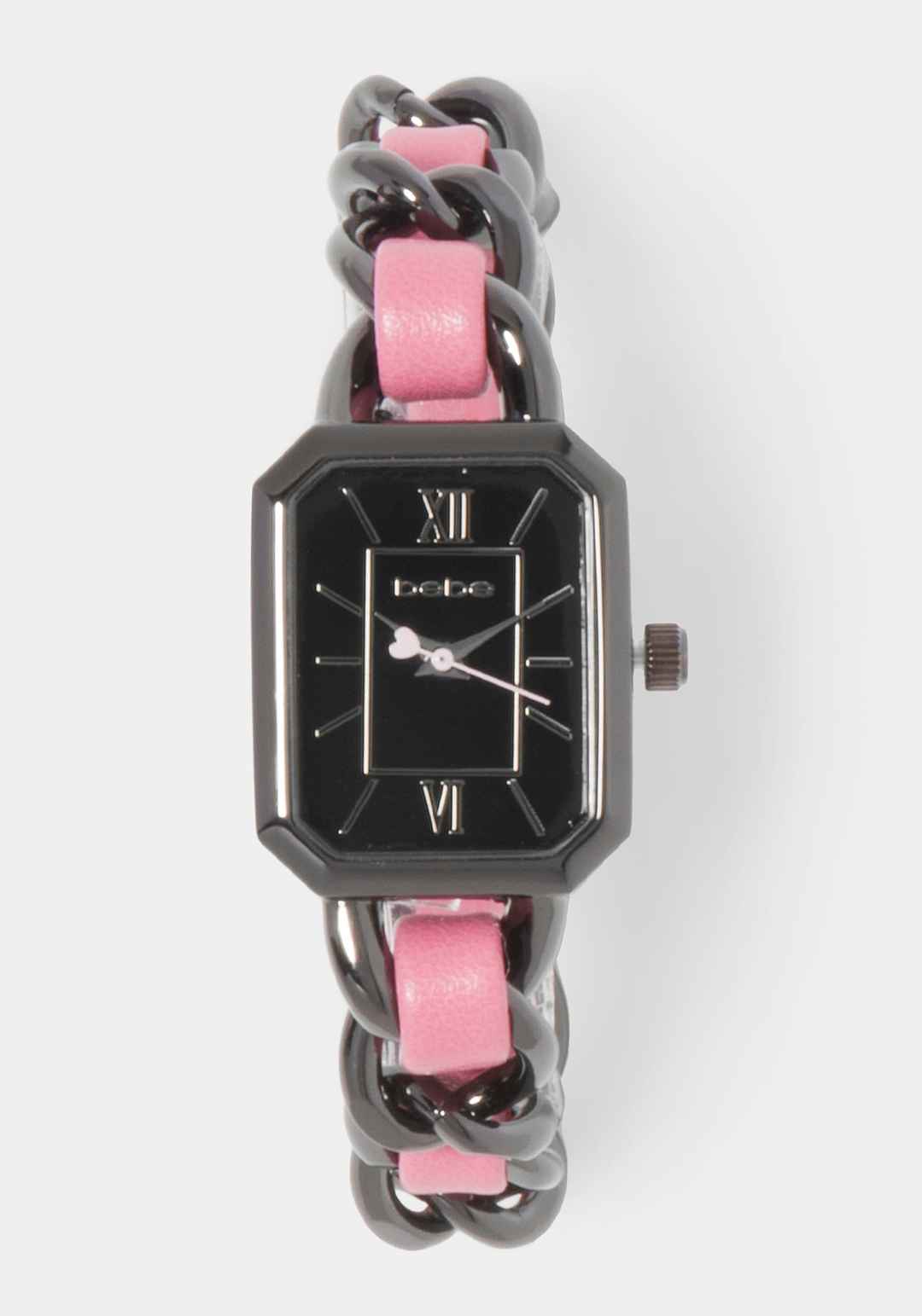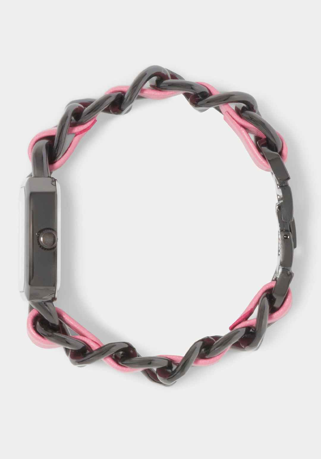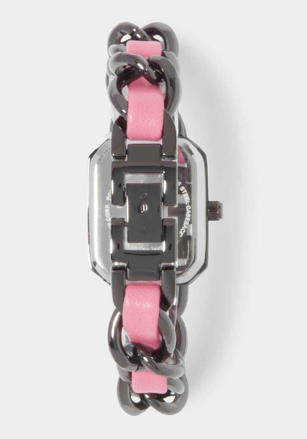 Pink Strap and Gun Metal Chain Link Bracelet Watch
