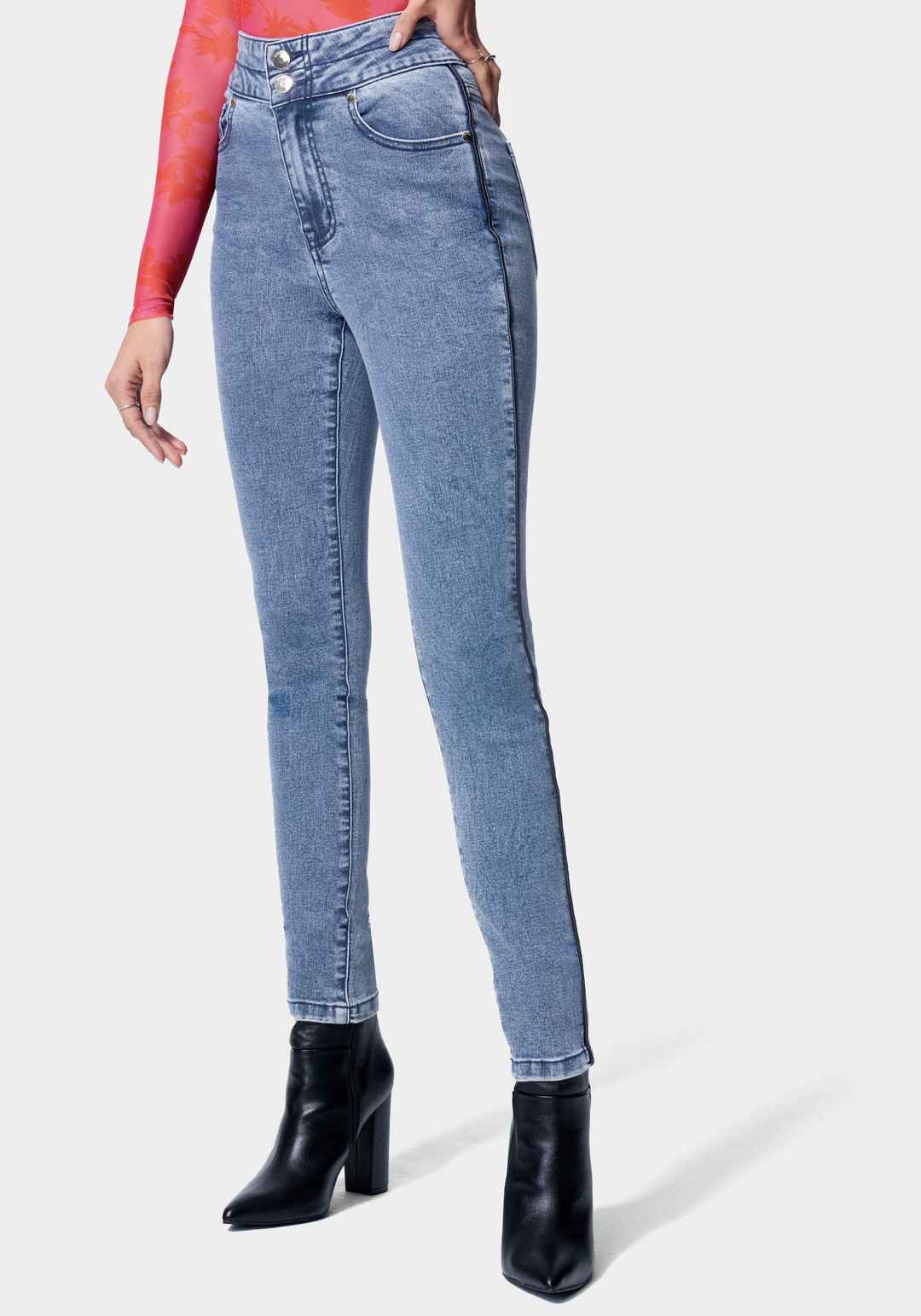 The skinny jean is back! Crafted in our signature Comfort Stretch denim, this jean features a high waist, reinforced seams, button zip fly, and a five-pocket construction. 74% Cotton, 22% Polyester, 2% Rayon, 2% Spandex Machine Wash In Delicate Cycle Imported 29" Inseam | Bebe Women's High Waist Ski...more