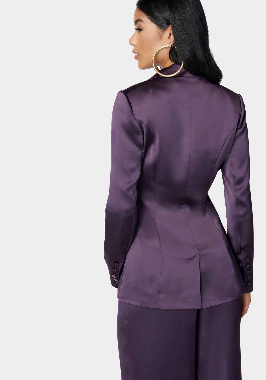 Discover refined elegance with our satin one-button tailored jacket. The lustrous material and single-button design offer a polished finish, perfect for enhancing your professional and evening wear. Pair with matching bustier and pant to complete the look. Size up for the ultimate fit. 100% Polyeste...more