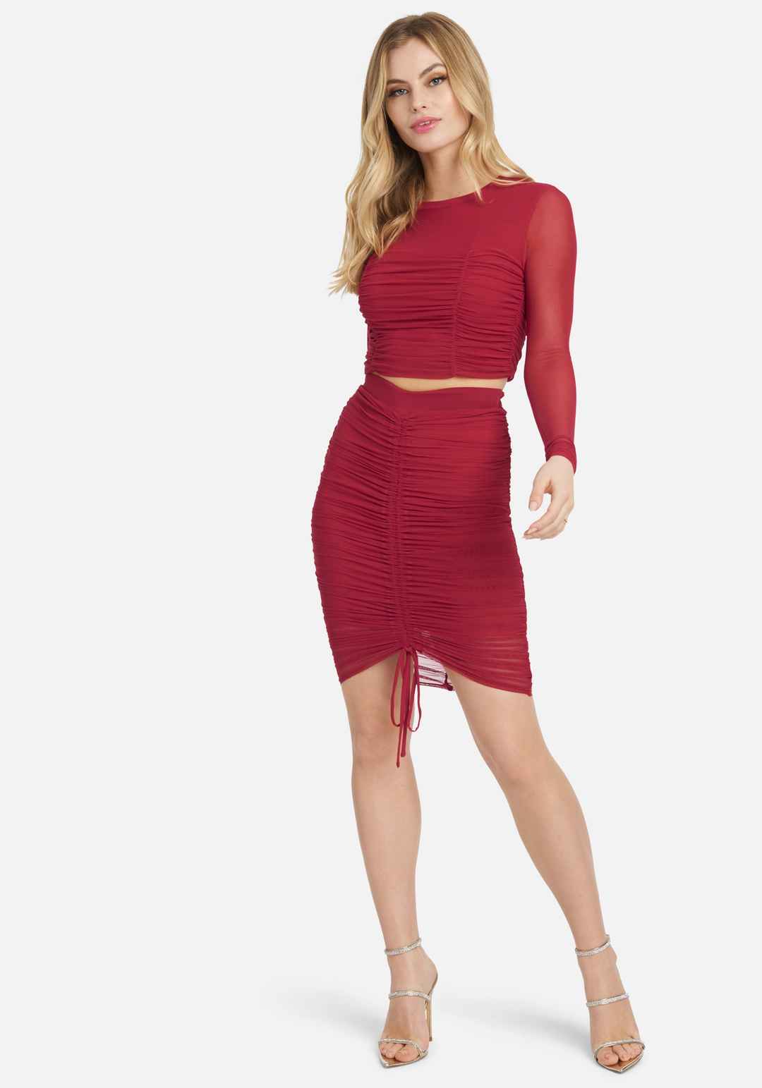 Your latest obsession has arrived. Featuring side ruching and self-ties, our Stretch Mesh Ruched Skirt pairs perfectly with the matching bodysuit for a look that's sweet and sexy. Body:90% Polyester, 10% Spandex; Lining:100% Polyester Hand wash. Hang to dry. Imported 25" Length | Bebe Women's 4 Way ...more