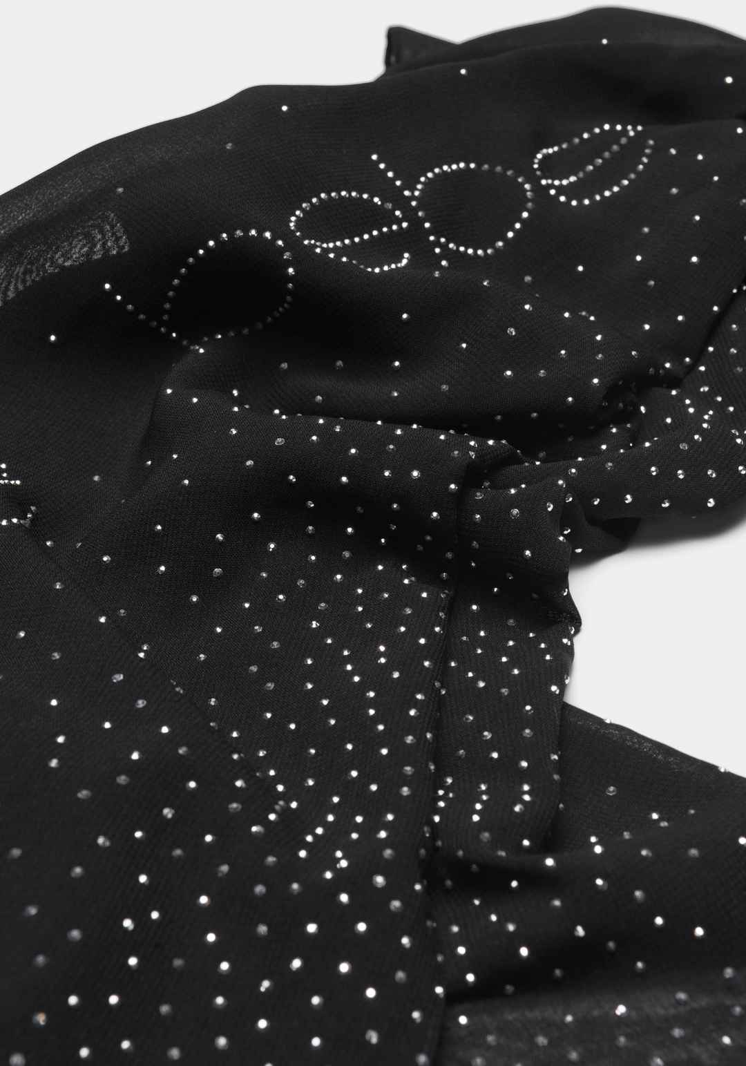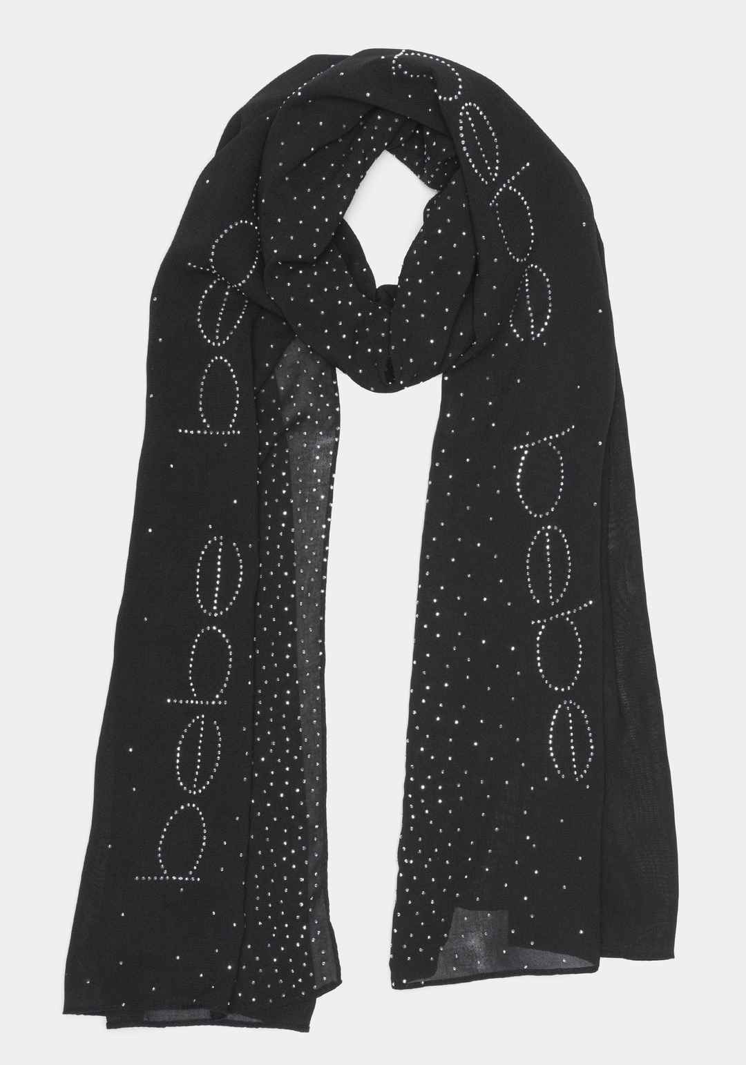 Add a touch of sparkle to your outfit with the luxurious bling logo scarf, featuring shimmering embellishments that catch the light just right. Hand wash cold 100% Polyester Imported | Bebe Women's Bling Logo Scarf, Size O/S in Black/Silver Polyester