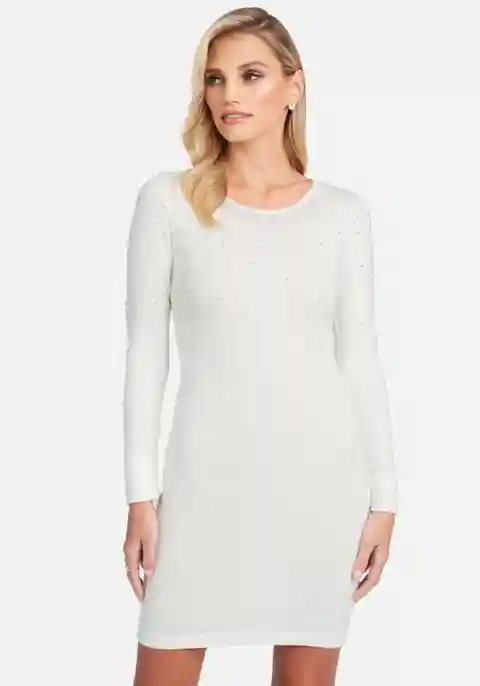 This show-stopping style is the perfect addition to your wardrobe. Features long sleeves and a crew neck adorned with shimmering accents. 47% Rayon, 30% Nylon, 23% Polyester Hand wash cold. Do not bleach. Dry flat. Do not iron. Do not dry clean. Wash with like colors. Imported | Bebe Women's Crew Ne...more