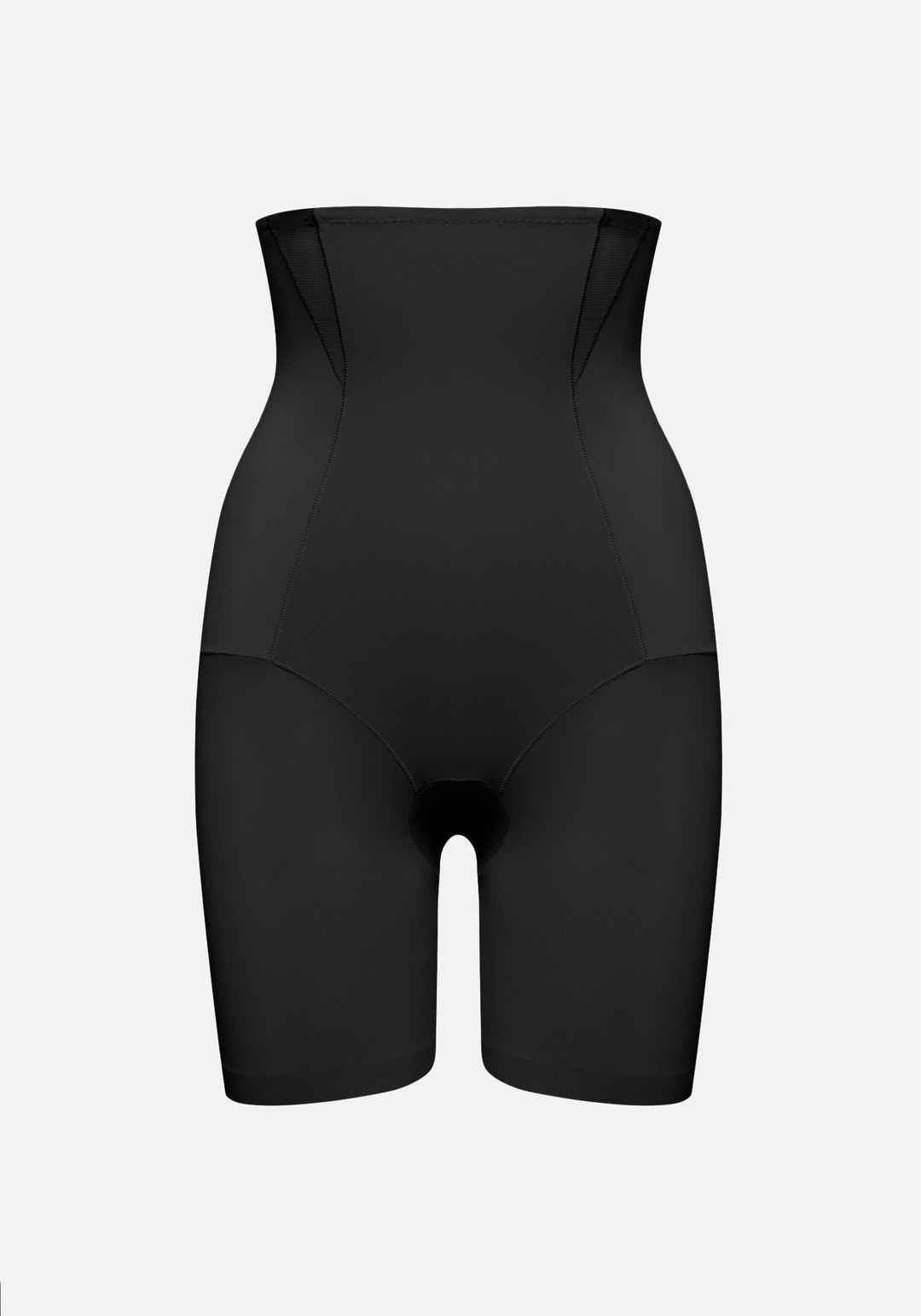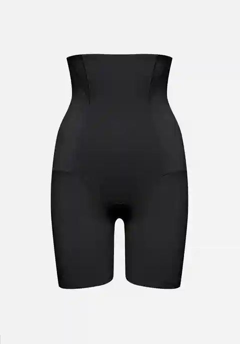 High waist elastic waist shapewear with tummy support. Solid body and mesh insert details. 90% Spandex, 10% Nylon Hand wash cold with light colors Imported | Bebe Women's High Waist Short Shapewear, Size XL in Black Spandex/Nylon