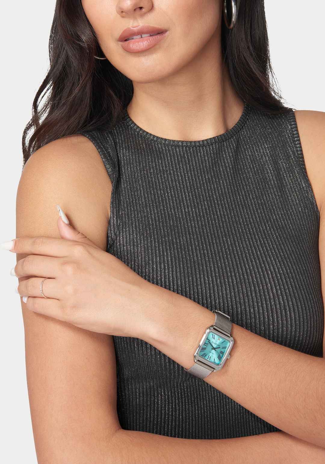 Discover the sleek sophistication of our silver mesh strap diamond dial watch. The finely woven mesh strap offers contemporary style, while the diamond dial adds a touch of timeless luxury. Stainless Steel Mesh Strap, Case Back and Buckle; Geuine Diamond Spot clean. Not water resistant. Imported | B...more