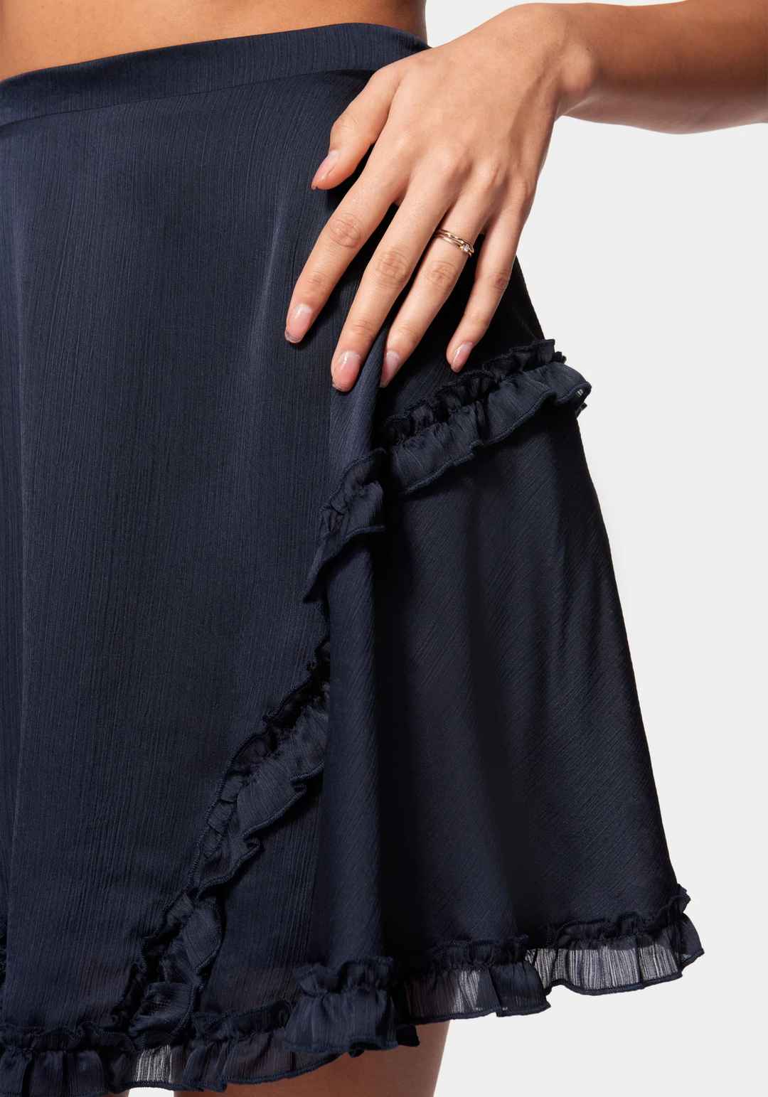 This skirt gives instant glamour. Featuring a Yoryu satin fabrication with delicate ruffled trim and the perfect mini length cut, this silky-soft skirt was made to stun. Pairs perfectly with the matching Yoryu Ruffle Wrap Top. 100% Polyester; Lining: 90% Polyester 10% Spandex Hand Wash, Hang To Dry ...more
