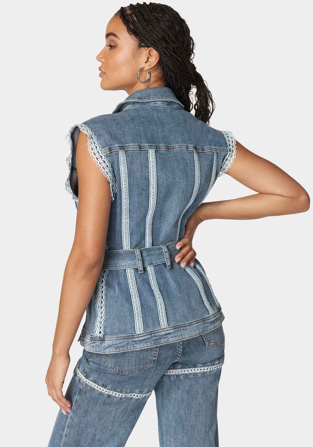 Semi Fitted Lace Applique Denim Vest