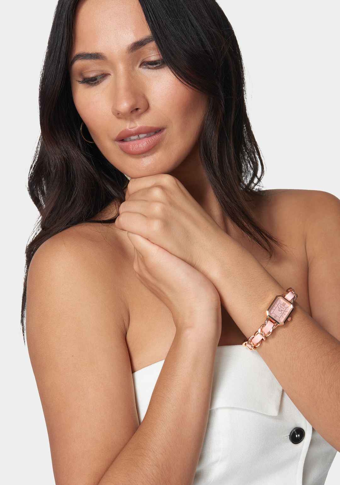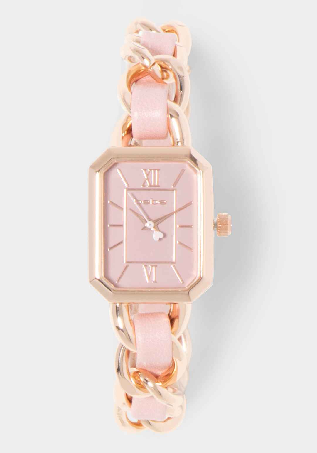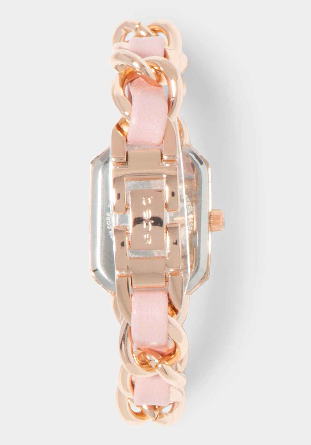 Baby Pink Strap and Rosegold Metal Chain Link Bracelet Watch