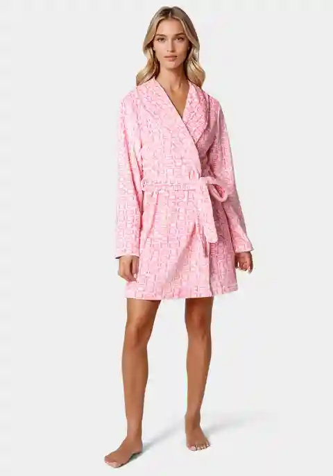 Wrap yourself in luxury with our ultra-soft, bebe logo-printed robe. Designed to make every day feel like a spa day. Material & Care: 100% Polyester Machine Wash Cold With Like Colors. Do Not Bleach. Tumble Dry Low. Delicate Gentle Cycle. Do Not Iron. Imported | Bebe Women's Printed Plush Robe, Size...more