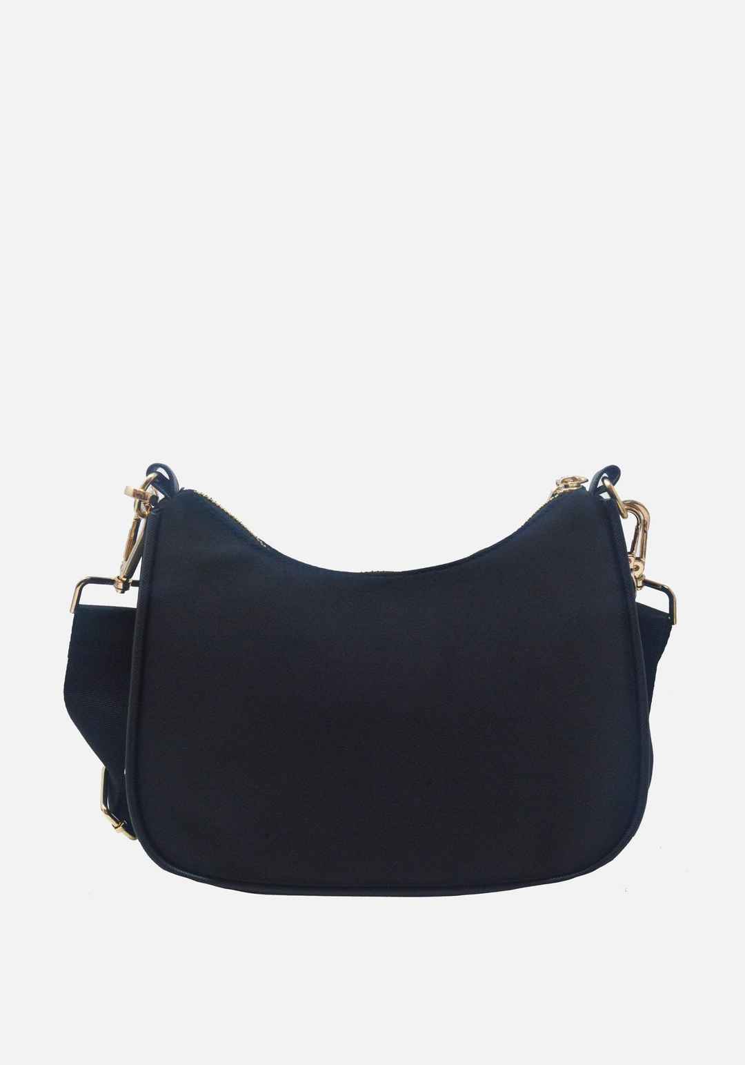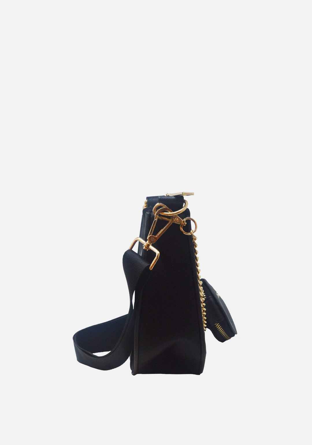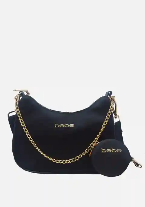 The IT bag all influencers want. Elevate your style with this nylon baguette-shaped crossbody. Designed with a gold chain for an accent that can also be utilized as a shoulder bag strap, featuring a round coin purse for extra storage. 100% Nylon Spot clean. Imported | Bebe Women's Mara Nylon Crossbo...more