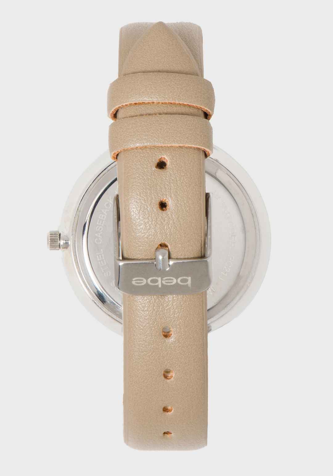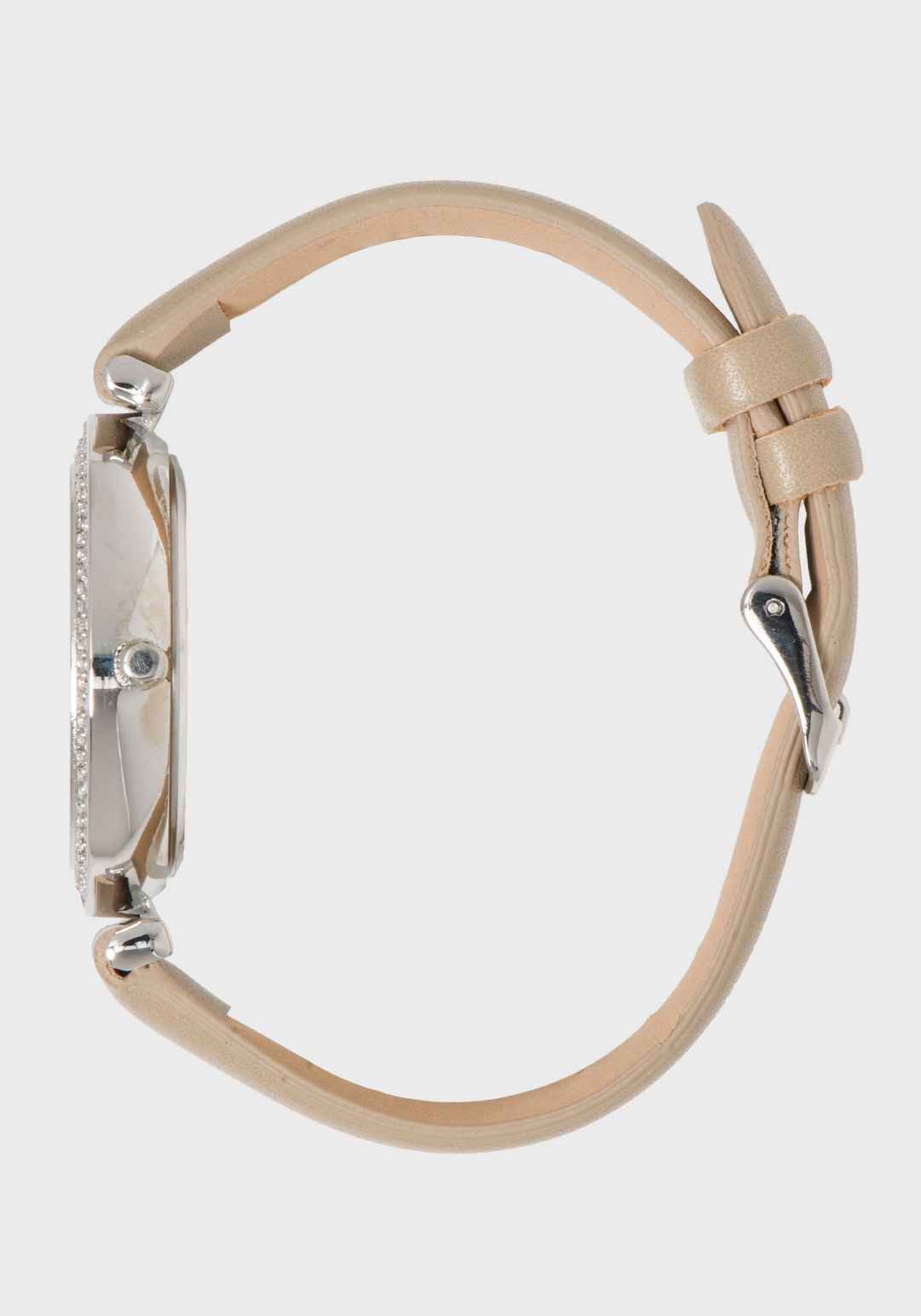 Taupe & Silver Crystal Bezel Watch