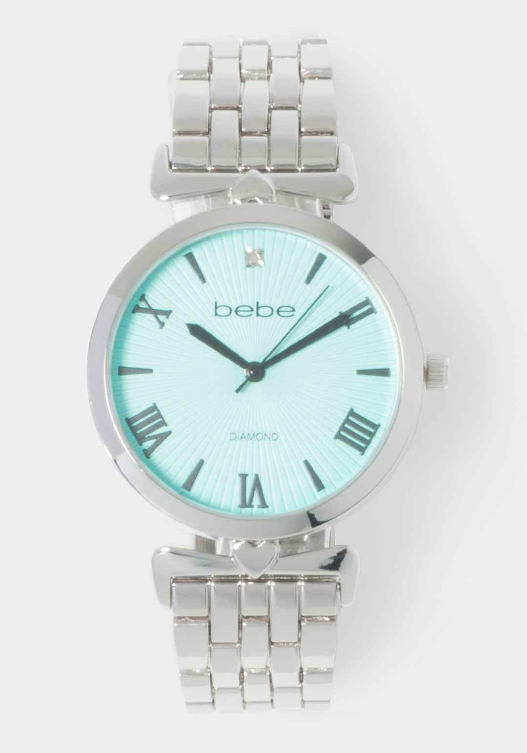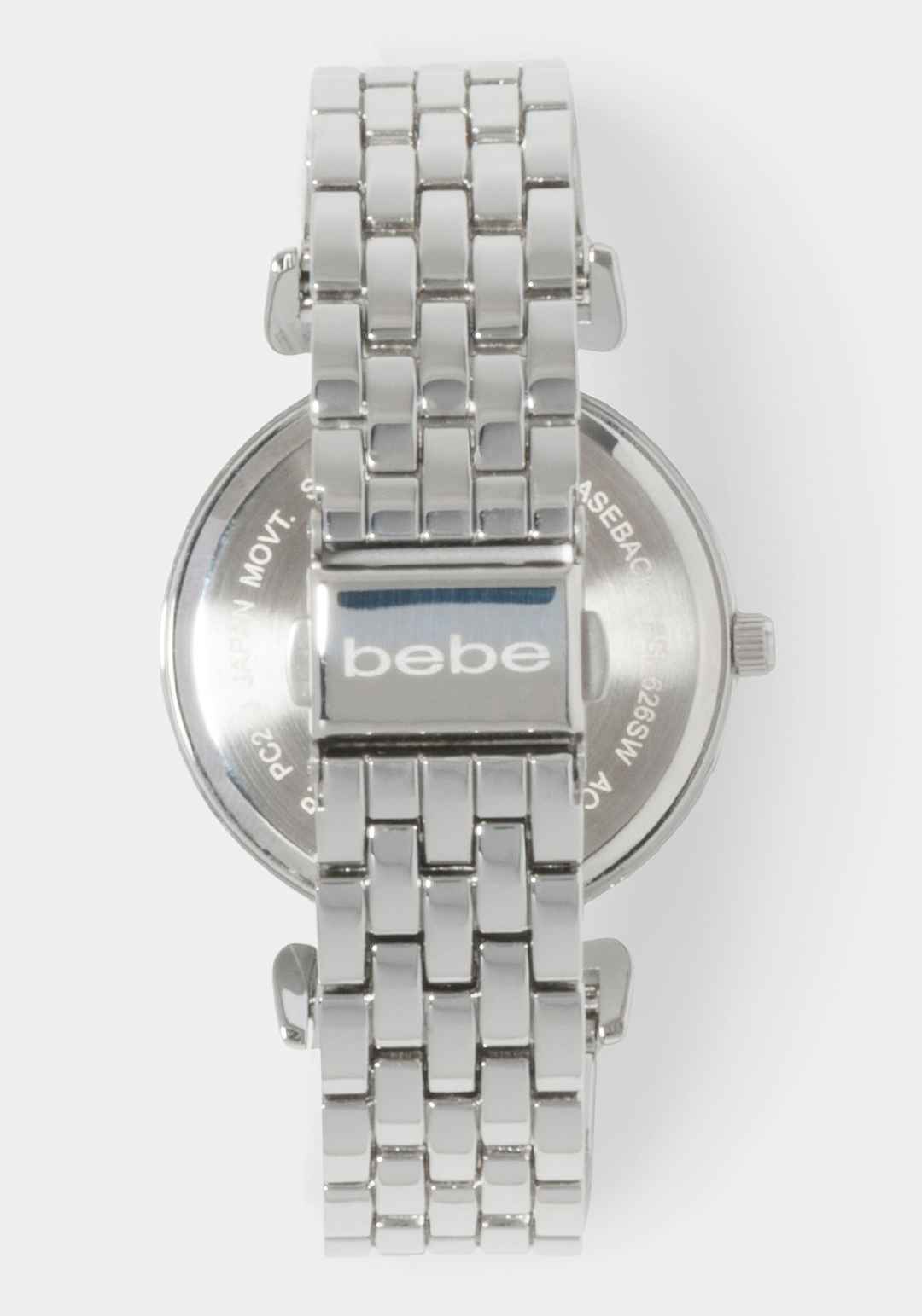 This watch stands out with its luxurious silver link bracelet and diamond-studded dial, embodying timeless elegance. It's a classic piece that complements every wardrobe. Alloy case and bracelet; Stainless Steel Caseback; Genuine Diamond. Spot clean. Not water resistant. Imported | Bebe Women's Silv...more