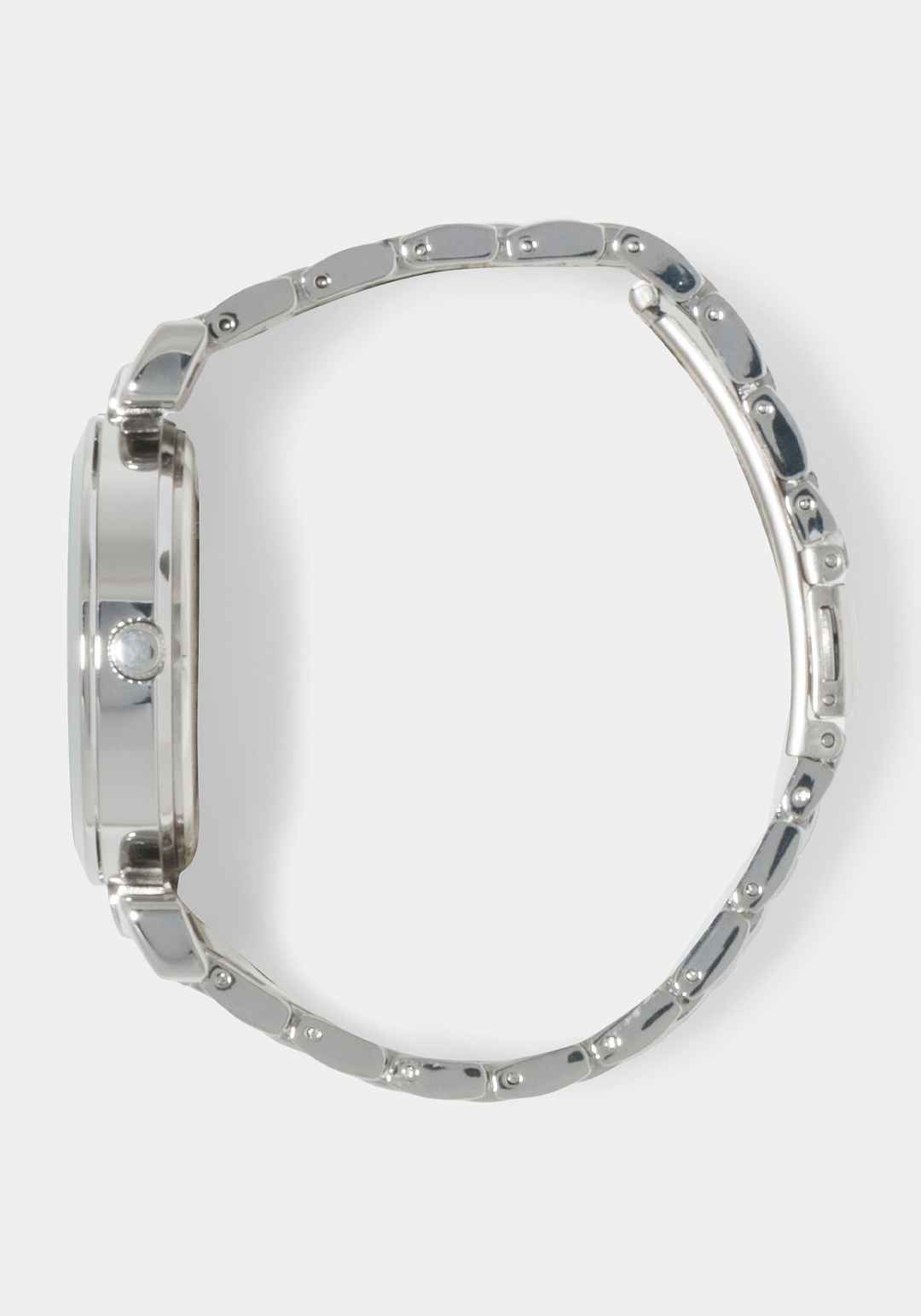 Silver Link Round Bracelet Diamond Dial Watch