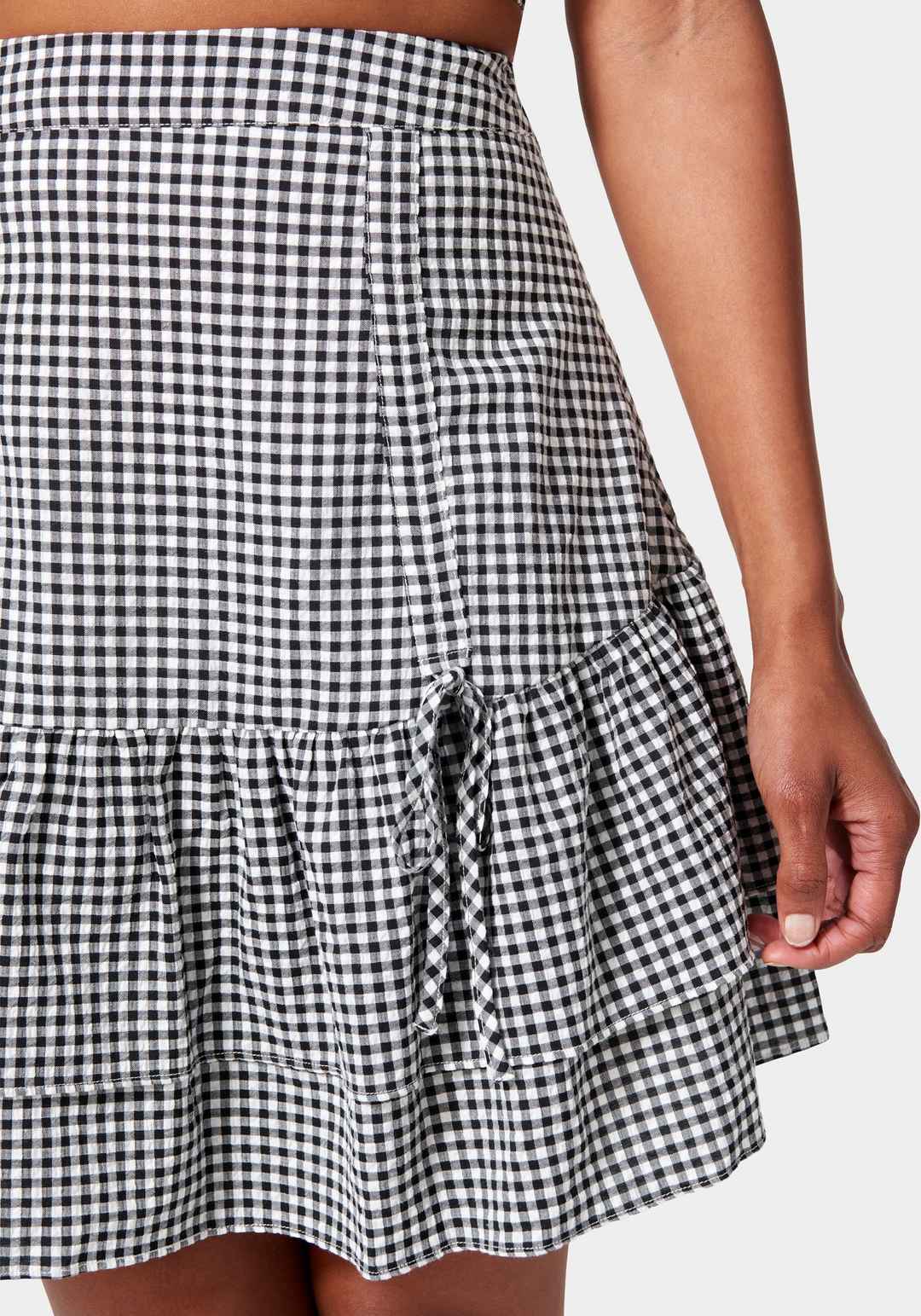 Mini Gingham Front Ruching Flutter Skirt