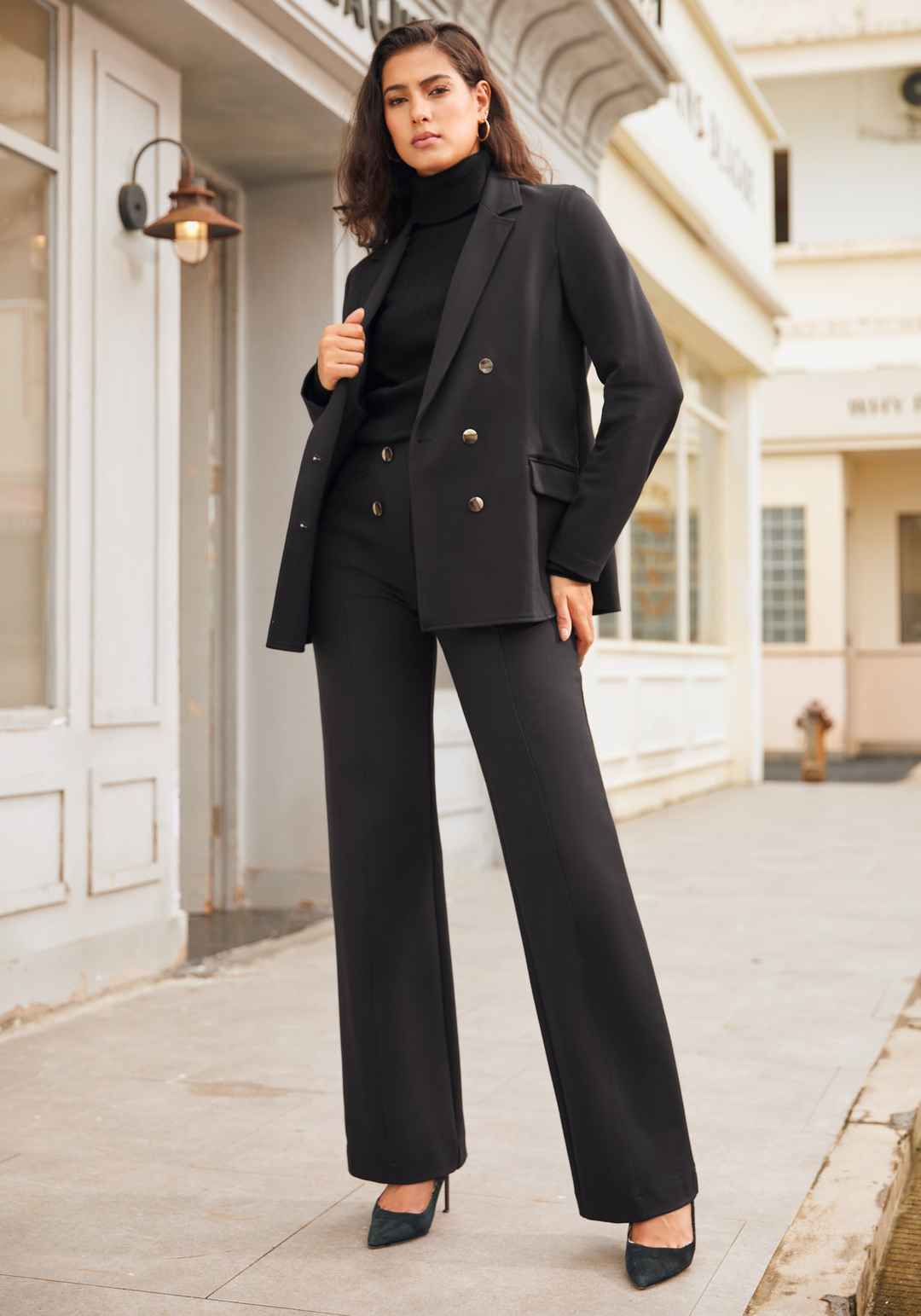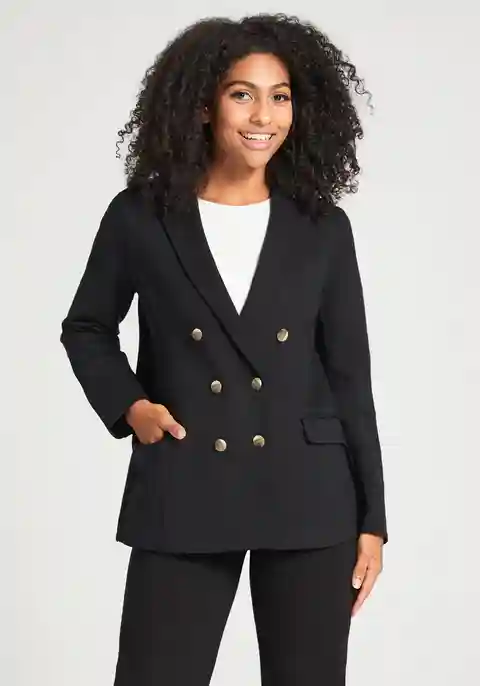 Breeze through your workday in the Double-Breasted Blazer, where fashion meets function. Enjoy the comfort of 4-way stretch fabric, the convenience of wrinkle resistance, and the utility of two pockets. Of course, they match back perfectly to your favorite Dress Pant Yoga Pants. Relaxed, boxy fit th...more