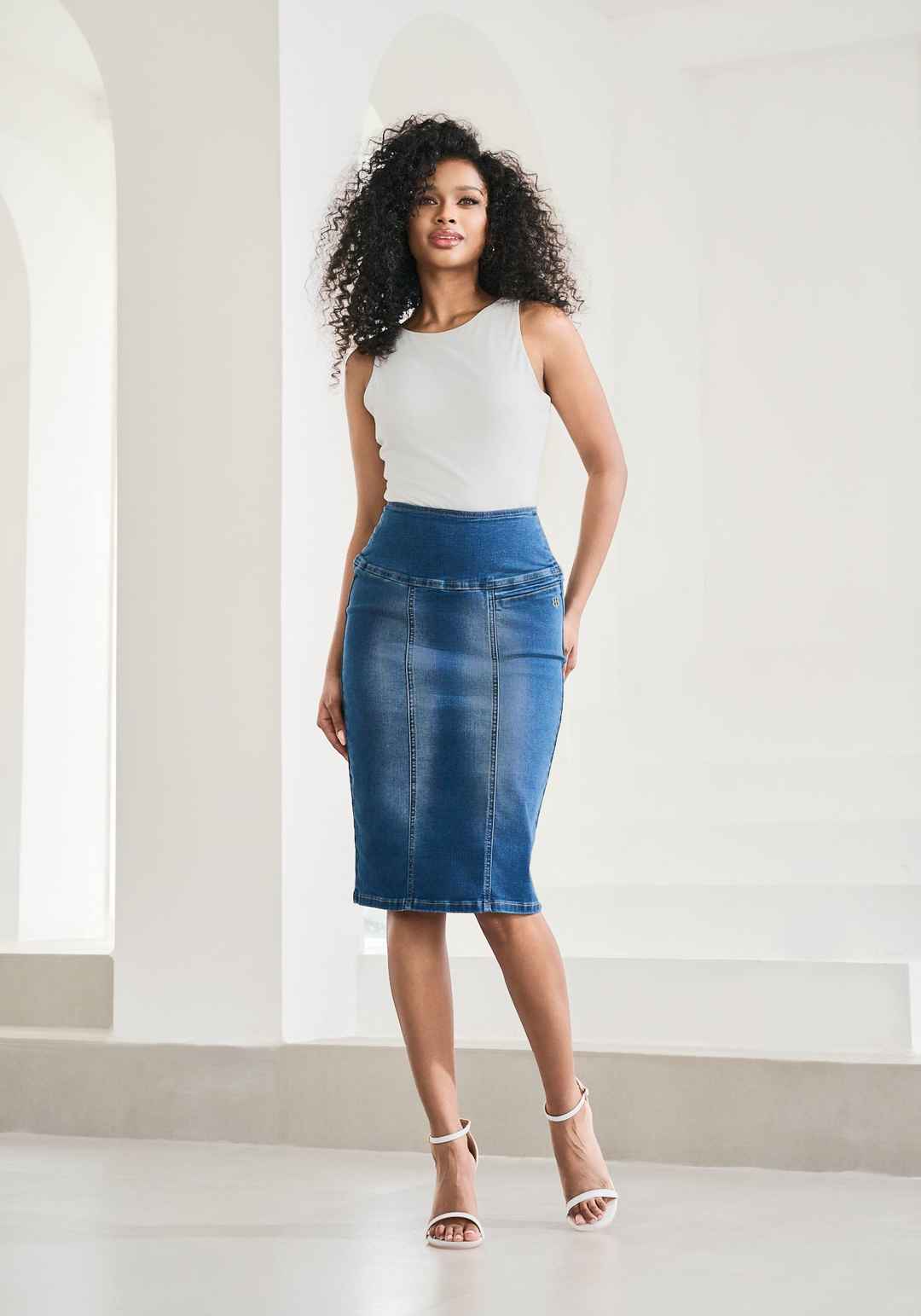 EZ Apparel Women's Denim Pants Pencil Skirt | Alamo Wash Blue | Size XS/Regular