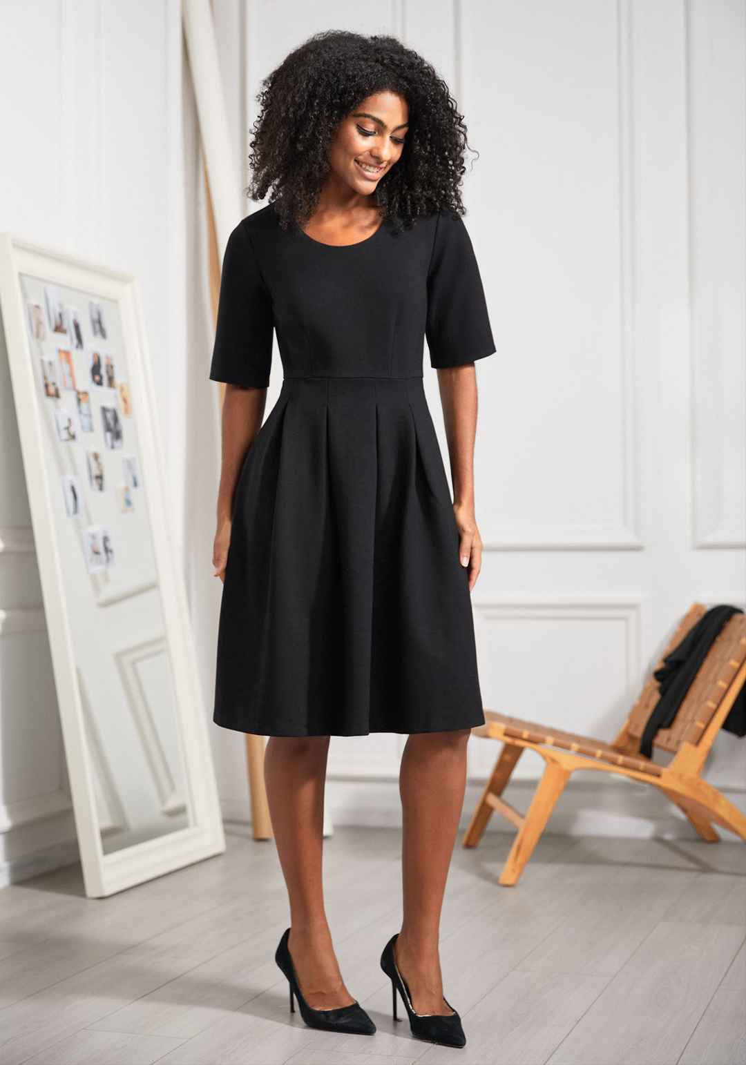 Get ready to swirl, twirl, and take on the world in this dress. This must-have staple redefines your wardrobe with its flattering fit & flare silhouette, enhanced by a gently pleated skirt. With the secret comfort of 4-way stretch ponte and discreet side-seam pockets, this piece will be in your clos...more