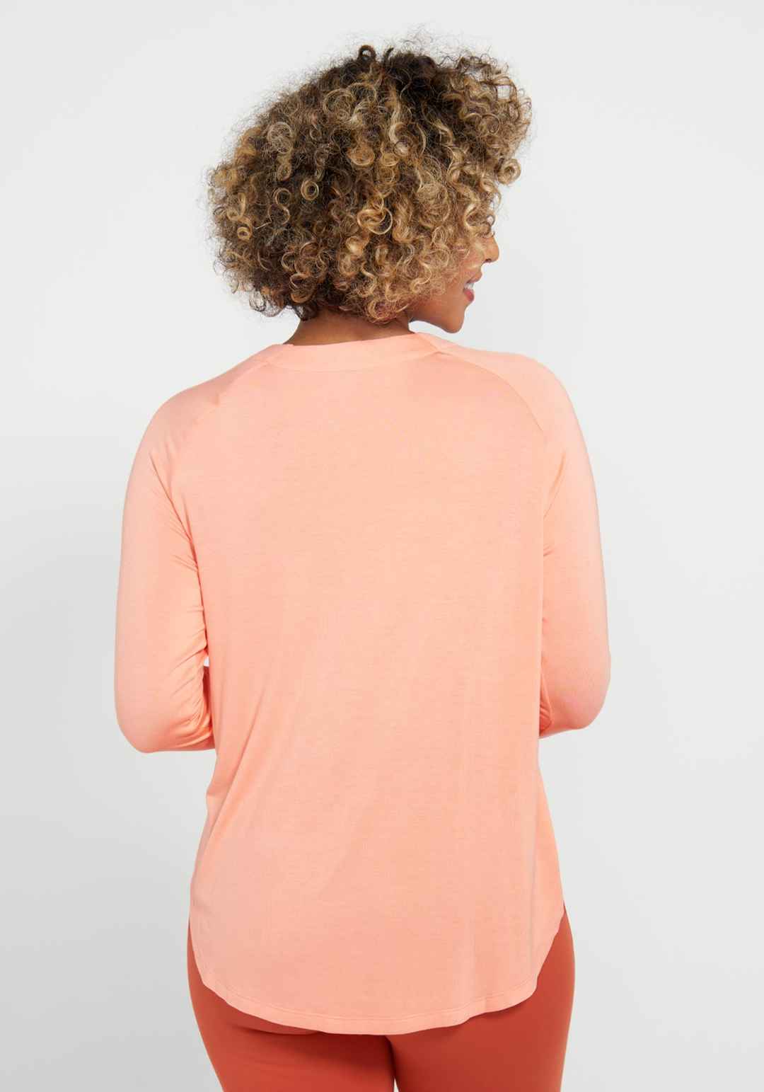 Betabrand Women's Essential Split Hem Long Sleeve Top | Pale Coral Orange | Size XS