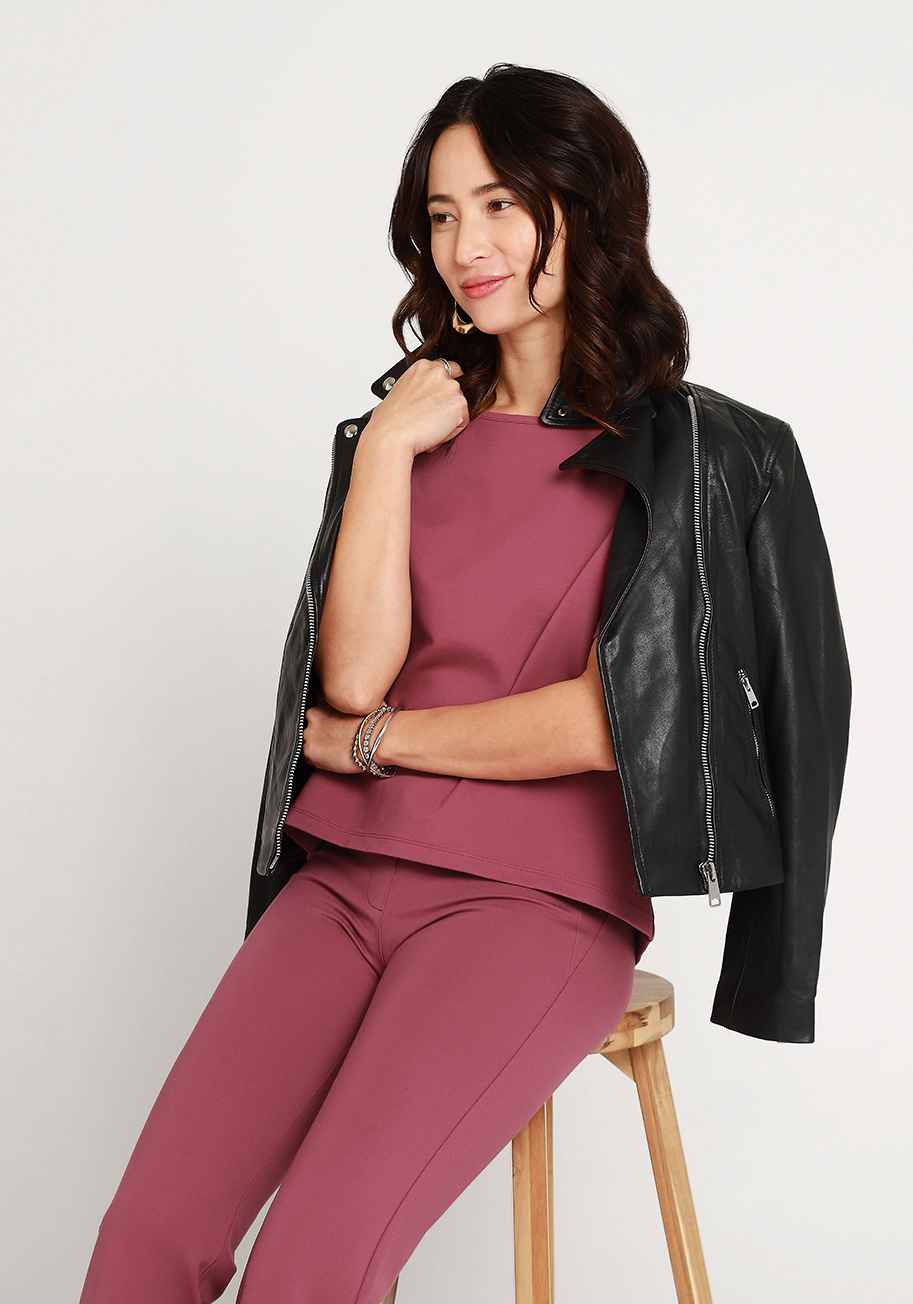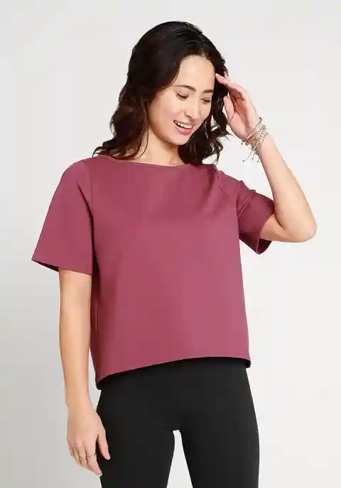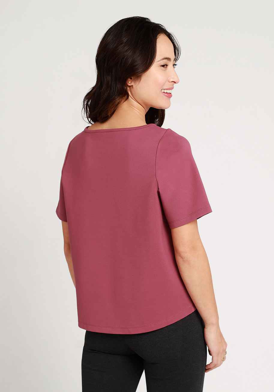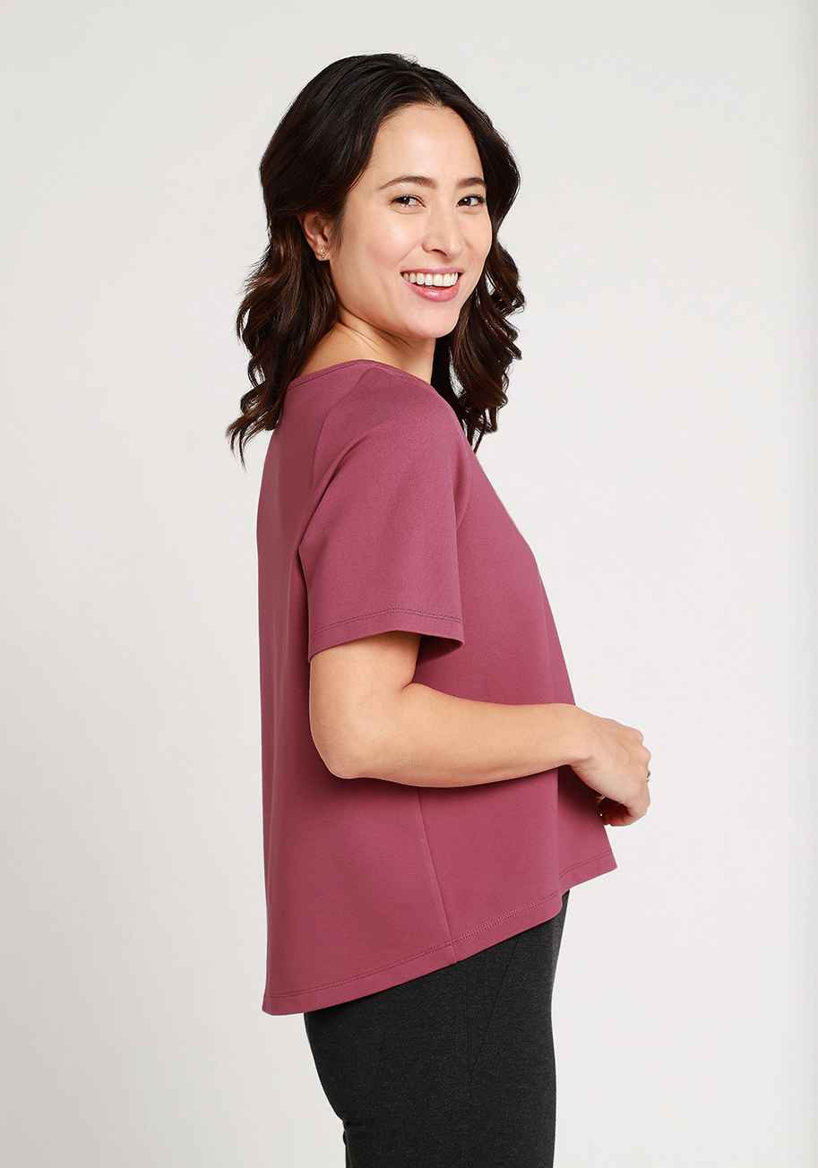 Betabrand Women's Boxy Hi-Low Short-Sleeve Top | Mauve Pink | Size Large