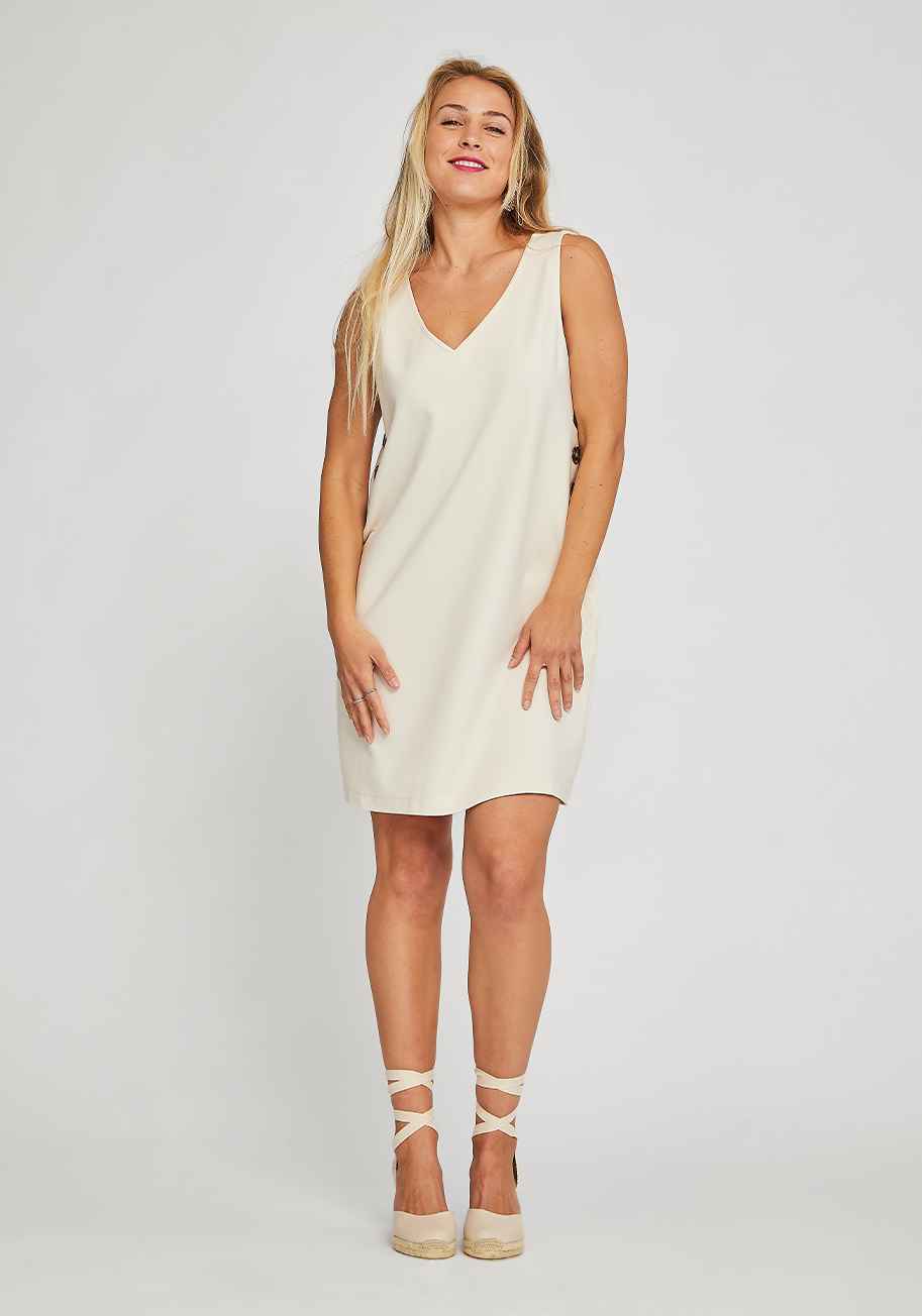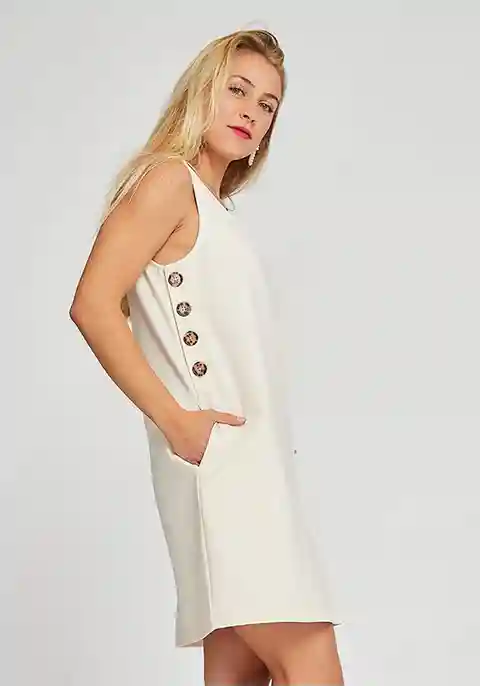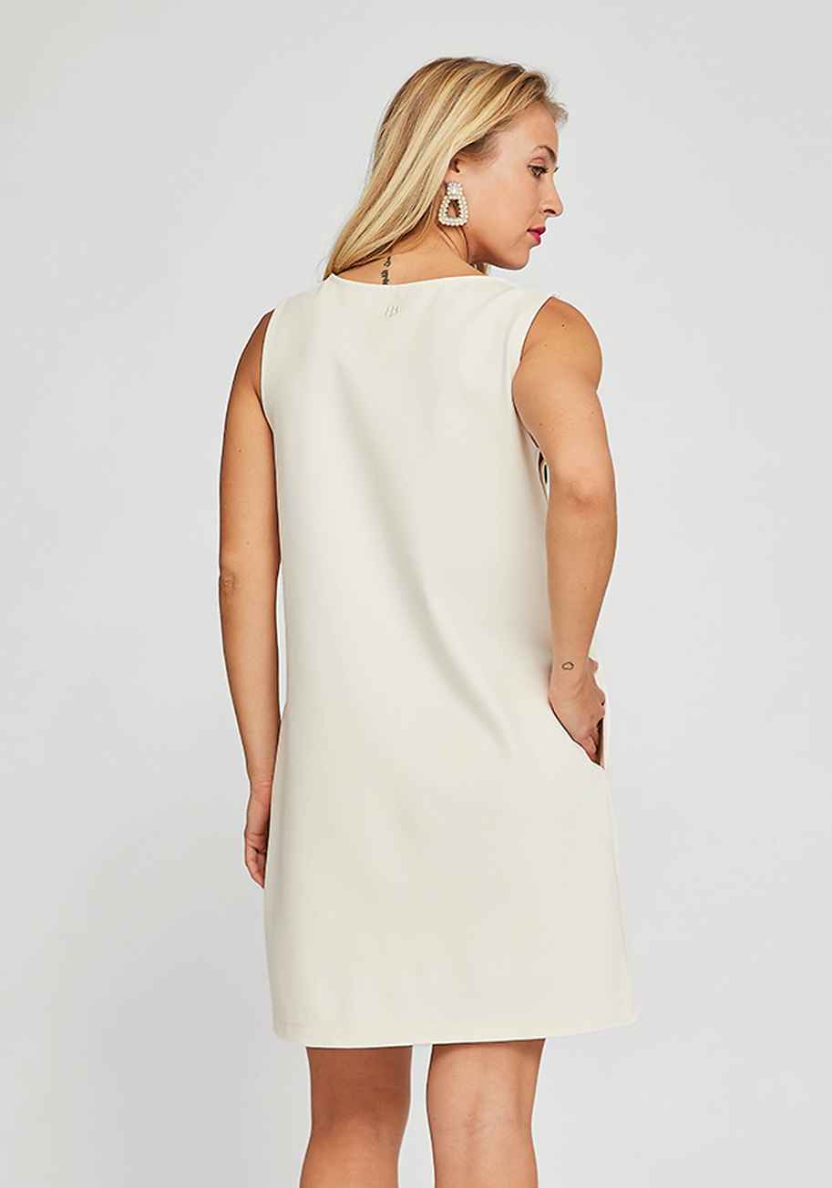 Sail into summer with the Admiral Button Shift Dress. This nautical-inspired dress comes in a beautiful coconut cream color the perfect hue for summer. Made with our comfortable and stretchy core ponte fabric, youll feel amazing whether you're in the sand, on the water or just dreaming of the sea. ...more