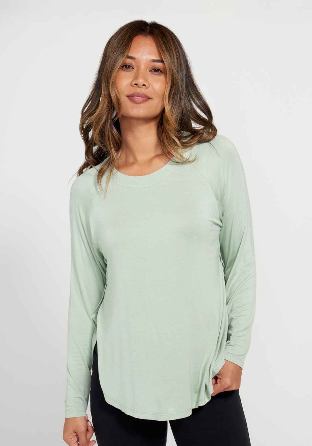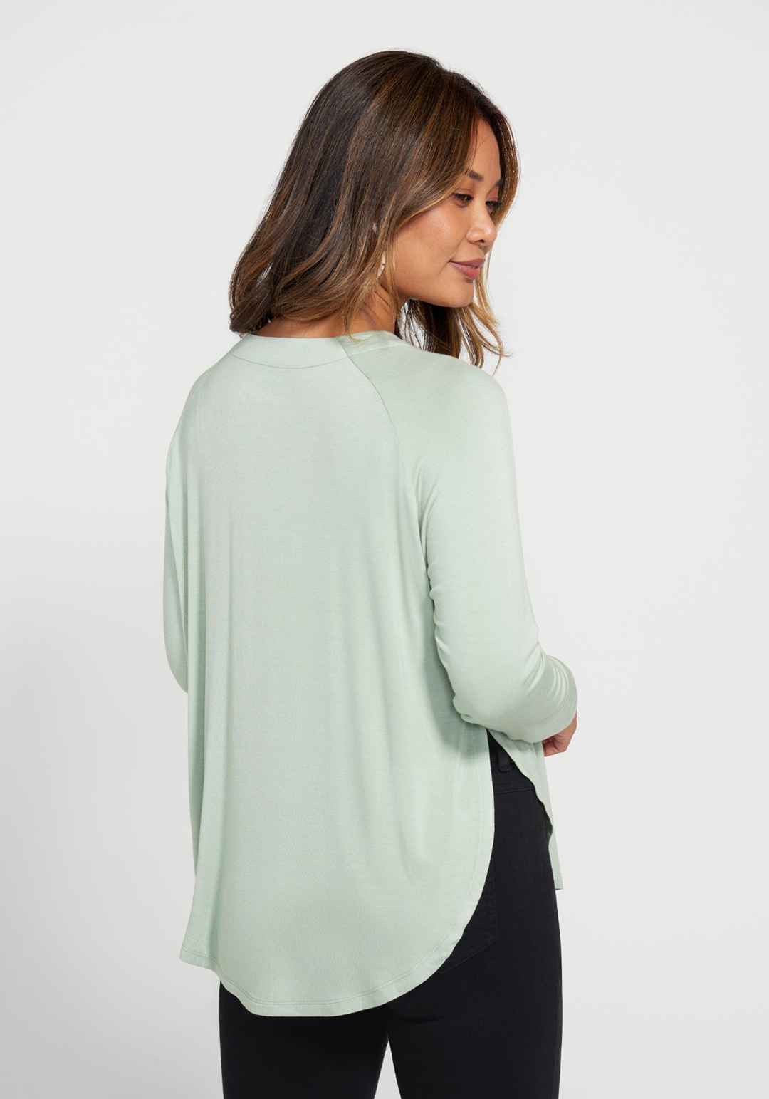 An absolute closet must-have, the Essential Split Hem Long Sleeve is so soft we want one in every color. A relaxed-fit style with gorgeous drape, and split hem detail. Loose and easy fit throughout the body. Features raglan sleeves and scooped hem that is split at the underarm on each side. 25 inche...more