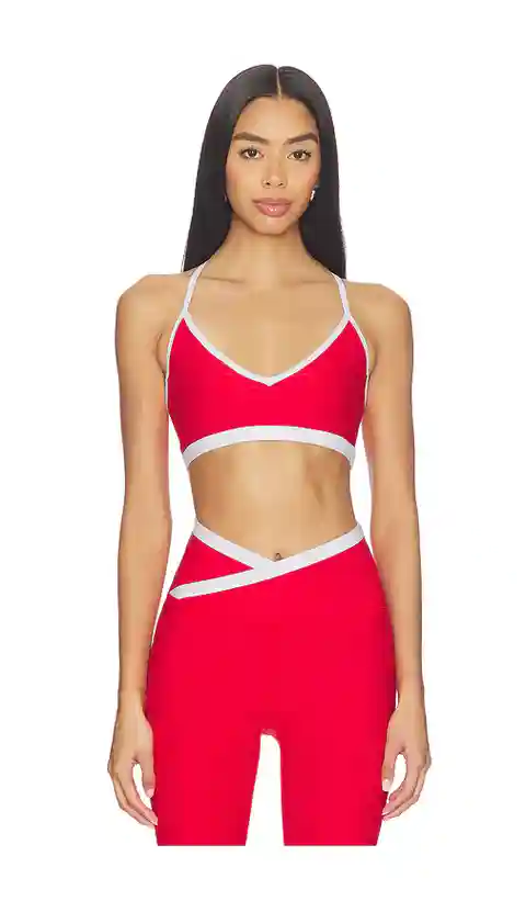 Beyond Yoga Spacedye Shirred Colorblock Bra in Red. - size L (also in M, S, XL, XS) Beyond Yoga Spacedye Shirred Colorblock Bra in Red. - size L (also in M, S, XL, XS) 87% polyester 13% elastane. Machine wash. Unpadded cups. Pull-on styling. Racerback design. Back reflective logo. Lightweight active...more