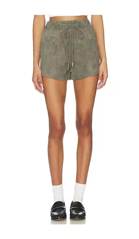 BLANKNYC Tie Shorts in Olive. - size L (also in M, S, XS) BLANKNYC Tie Shorts in Olive. - size L (also in M, S, XS) 96% polyester 4% elastane. Made in China. Machine wash delicate. Drawstring closure. Side seam pockets. Faux suede material. Shorts measure at approx 12 in length. BLAN-WF155. 67EG8649...more