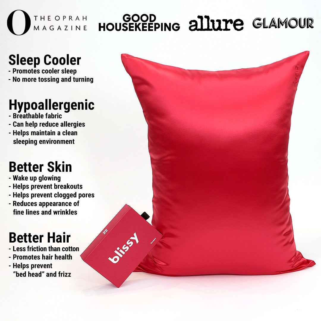 Blissy 100% Mulberry 22-Momme Silk Pillowcase - Red - Queen