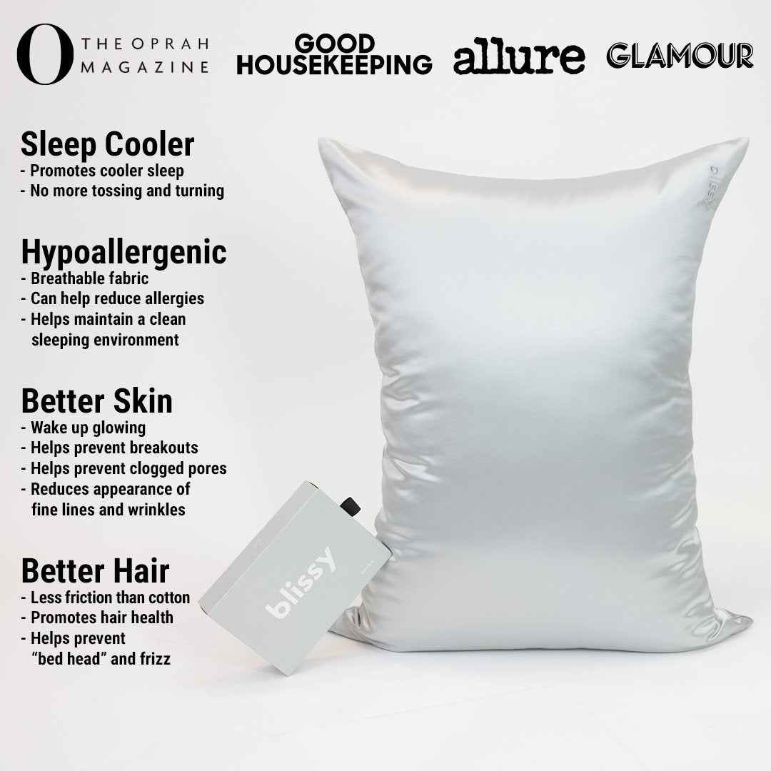 Blissy 100% Mulberry 22-Momme Silk Pillowcase - Silver - King