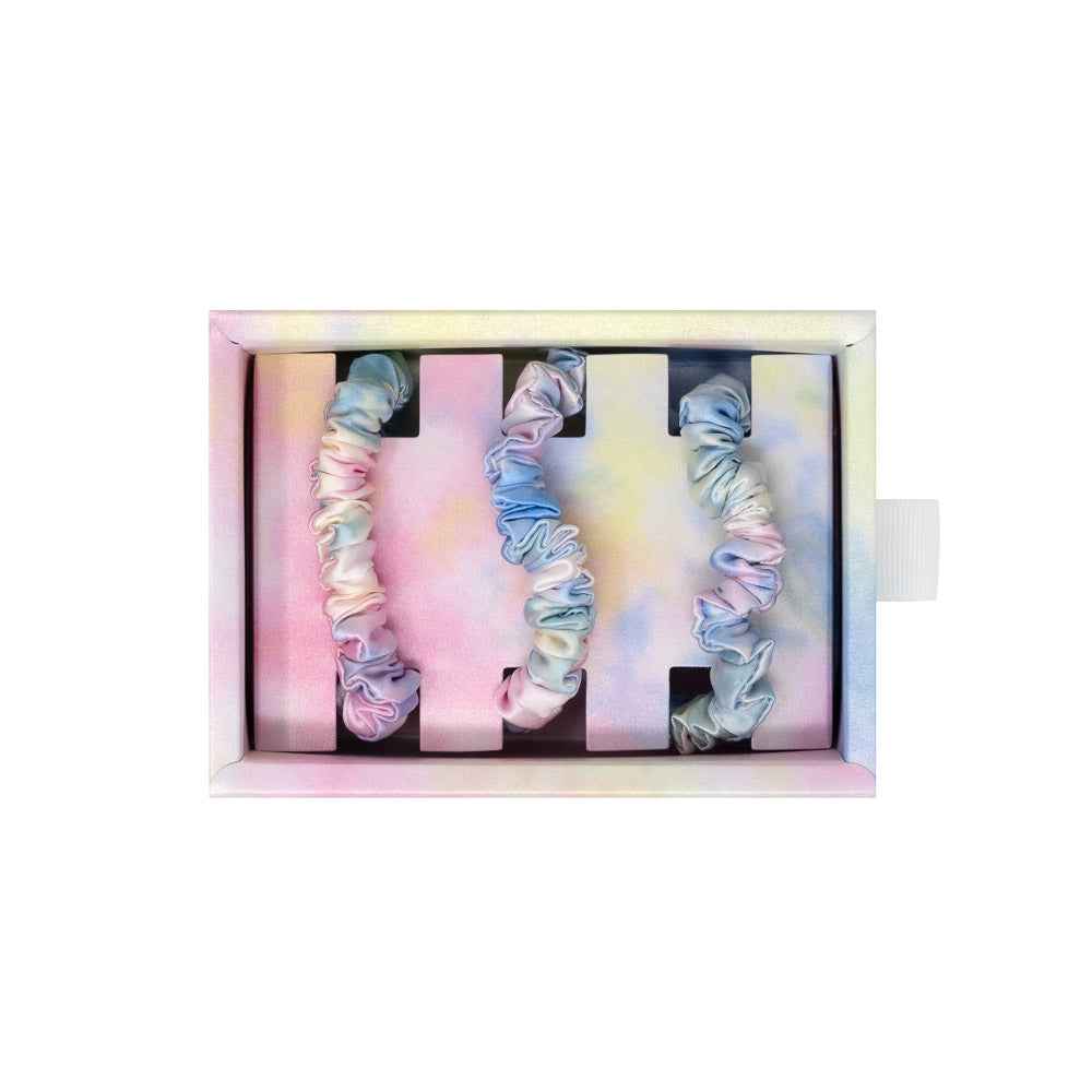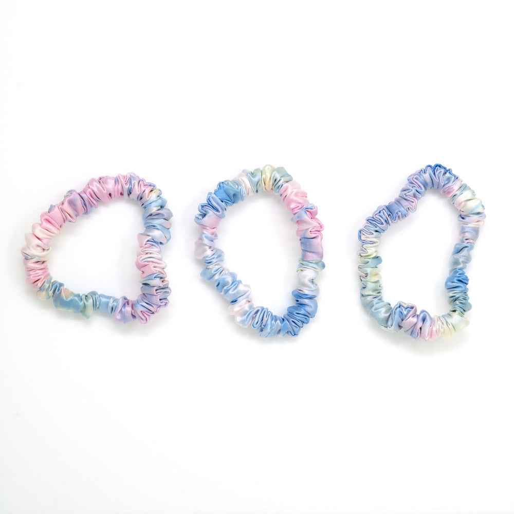 Blissy 100% Silk Skinny Scrunchies - Yellow Tie-Dye - 100% Mulberry Silk
