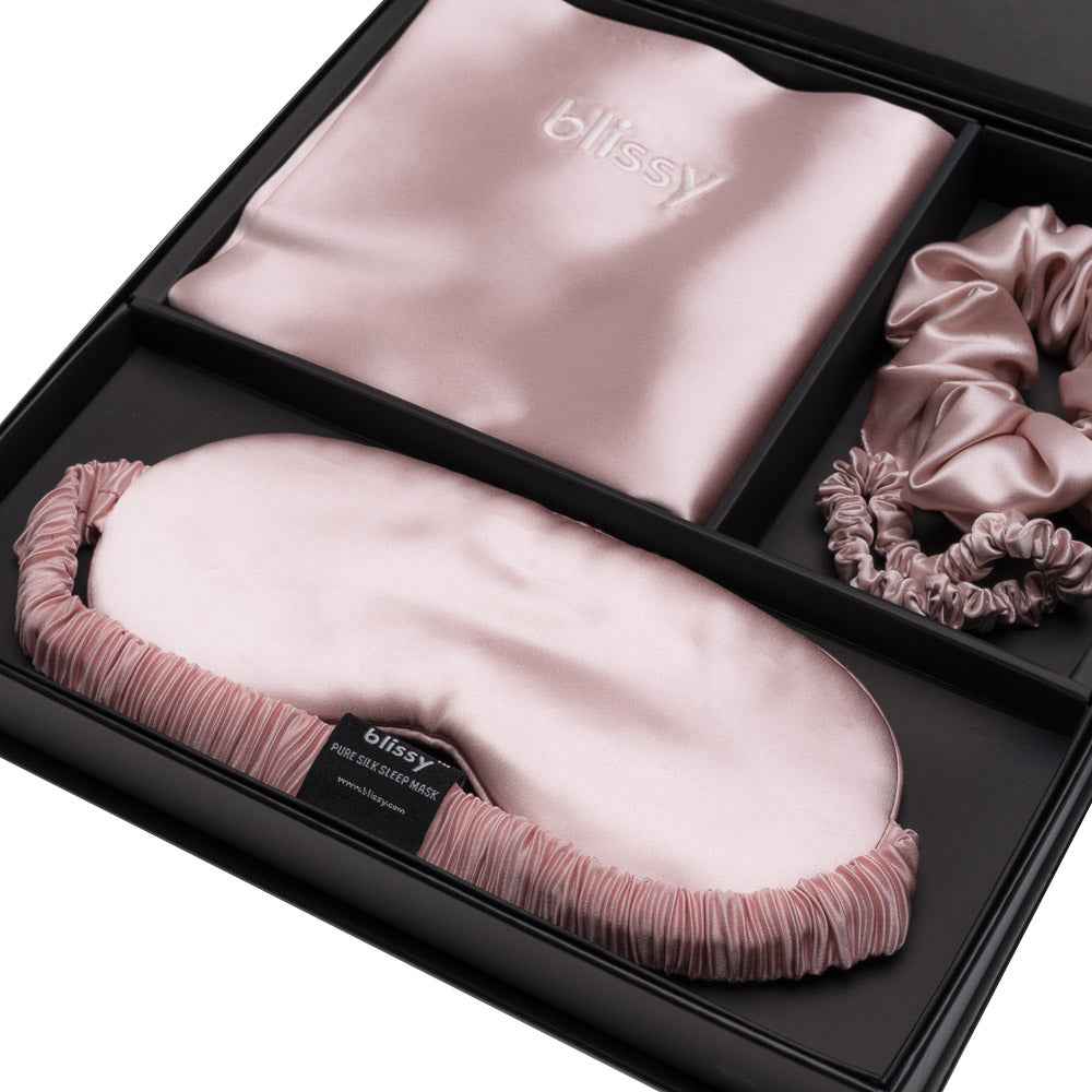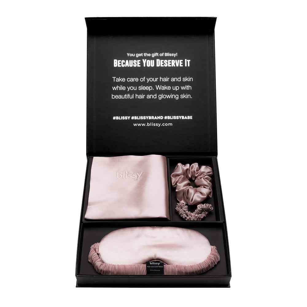 The Blissy Dream Set is officially here! The ultimate beauty sleep set which includes the world's best silk pillowcase, sleep mask, scrunchie and skinny scrunchie! Blissy silk products are handmade and crafted from high quality 22-Momme 100% Pure Mulberry Silk. We have spent countless hours prototyp...more