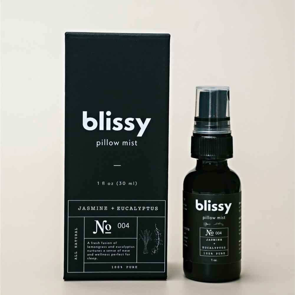 100% Jasmine and Eucalyptus Essential Oil 1 fl oz (30 ml) The Blissy Sleep & Pillow Mist combines 100% natural Jasmine and Eucalyptus Essential Oil for a luscious symphony of floral and herbal fragrance that brings relaxation and tranquility. How to Use: Mist this soothing spray high in the air...more