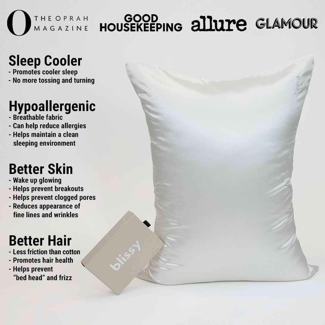 Blissy 100% Mulberry 22-Momme Silk Pillowcase - White - Standard