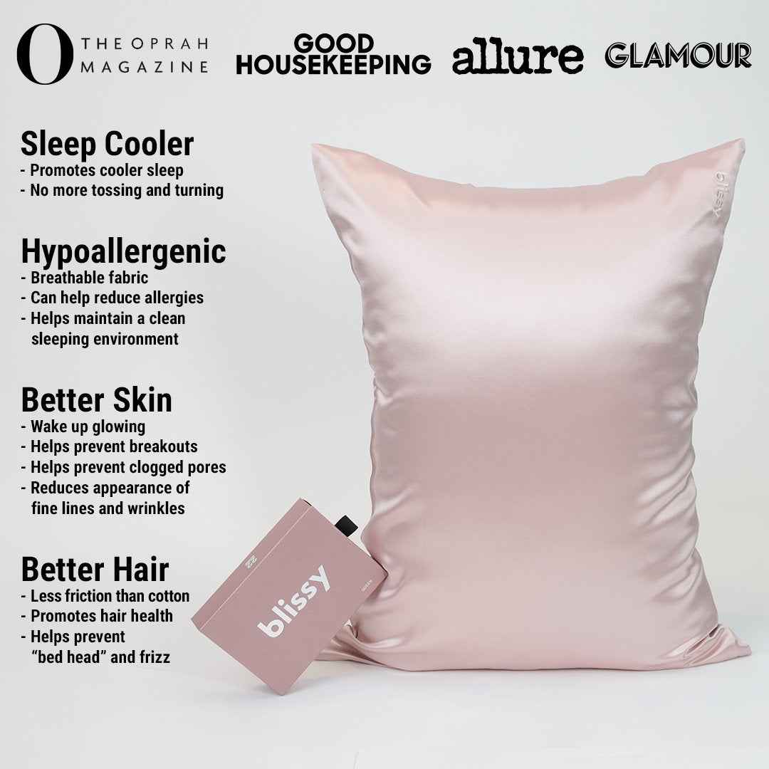 Blissy 100% Mulberry 22-Momme Silk Pillowcase - Pink - Queen