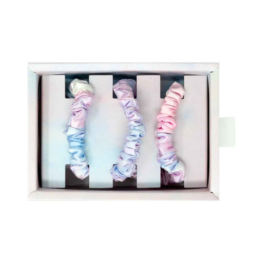 Blissy Silk Skinny Scrunchies are made from the same high quality pure mulberry silk as our popular pillowcases. Perfect for your hair, they come in a 3-pack No frizz, no tugging, no damage.....just pure silky smoothness.