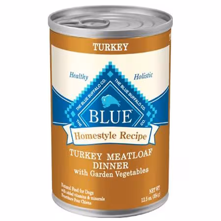Blue Homestyle Recipe Turkey Meatloaf Dinner provides your dog with delicious, high-quality turkey, wholesome whole grains and garden fruits and vegetables including carrots, sweet potatoes, blueberries and cranberries.