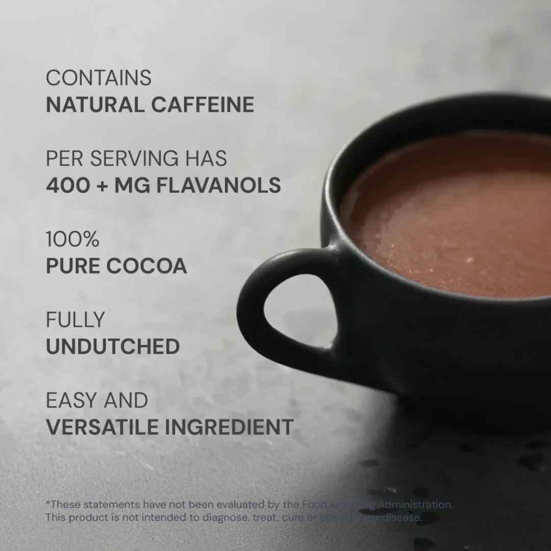 Part of Bryan Johnson’s post-workout protocol. Flavanol-rich, pure cocoa powder to support energy, immune health and a balanced mood.