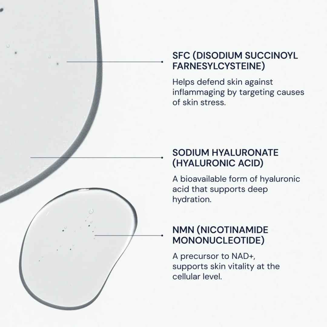 This advanced formula delivers our most potent concentration of SFC and NMN to help reduce visible inflammaging and support natural collagen production.
