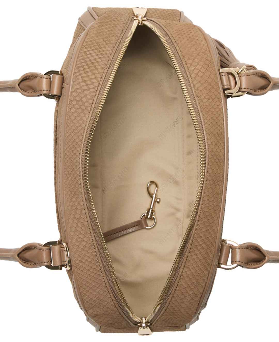 Letting the silhouette come to life with its softness, this Brahmin satchel boasts a lightweight croc-embossed texture. The double zip closure and constructed interior pockets allow for easy access and effortless organization.